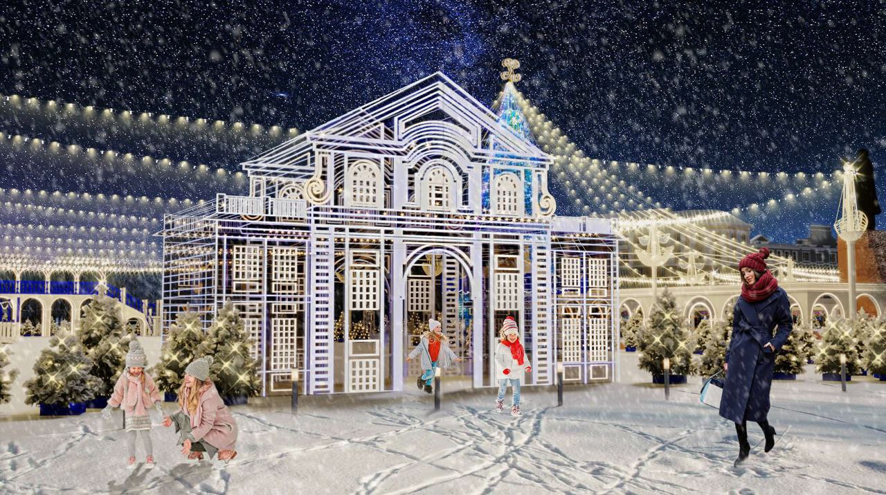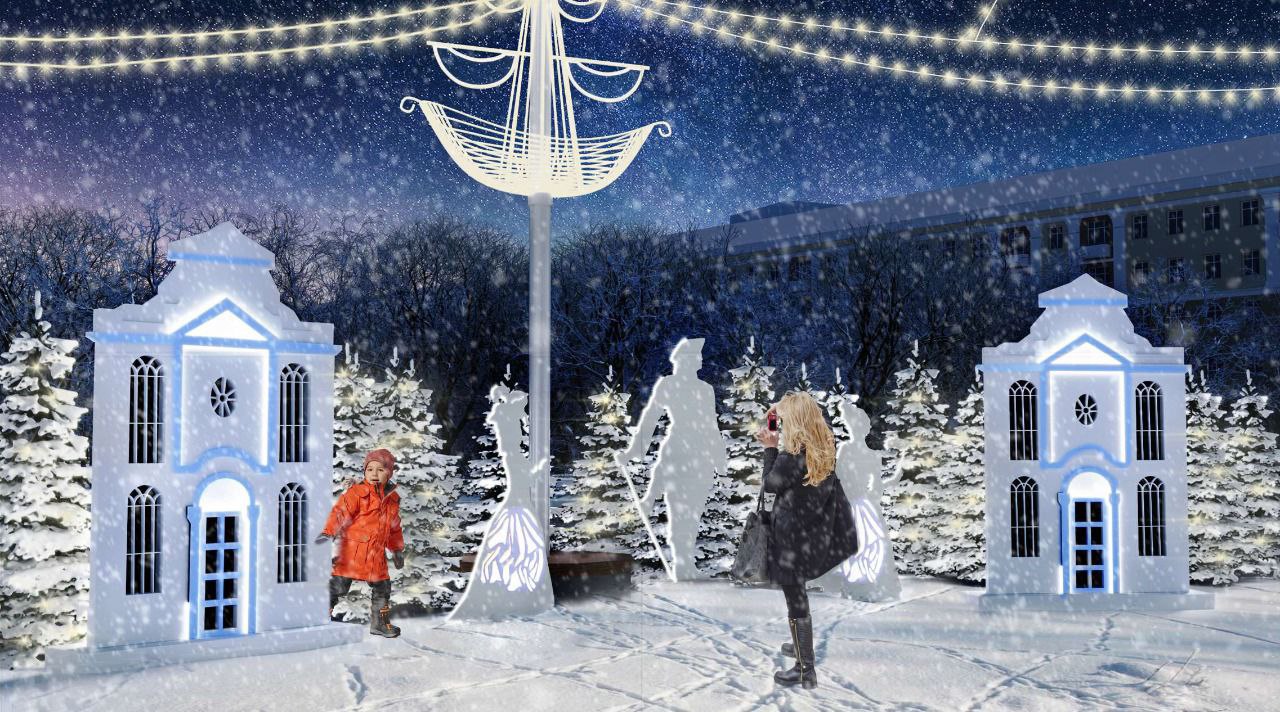 – Входные группы на территорию площади будут выполнены в виде световых инсталляций, спроектированных по образу «Кикиных палат» – памятника архитектуры петровского барокко. При входе на площадь посетителей будут встречать карусель, качели в виде петровских кораблей, а также горка. Центральная часть композиции – это новогодняя ель, украшенная вензелем Петра I, который и ввел традицию ставить и наряжать хвойные деревья.