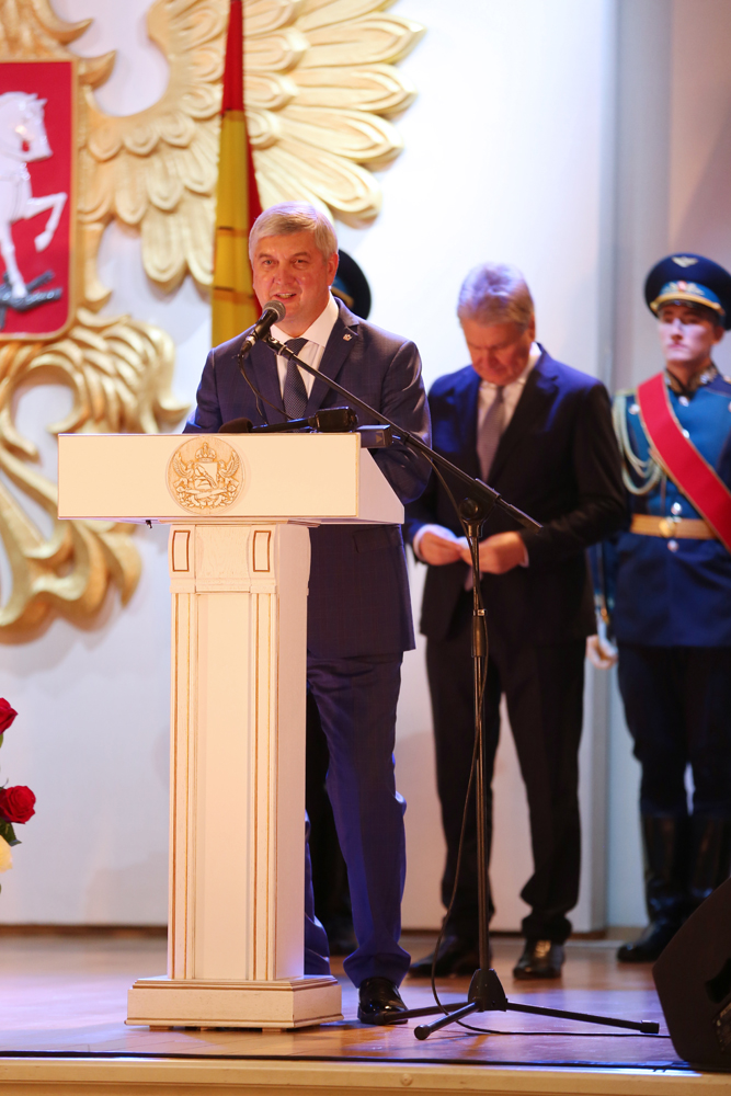 В это же время в правительстве Воронежской области стартовала торжественная церемония открытия Дня города. В ней приняли участие губернатор Воронежской области Александр Гусев главный федеральный инспектор в Воронежской области аппарата полномочного представителя президента в ЦФО Александр Солодов, мэр Воронежа Вадим Кстенин, председатель Воронежской городской Думы Владимир Ходырев.