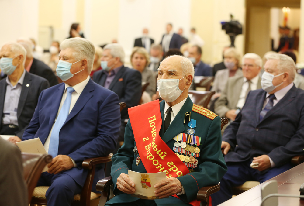 Продолжением праздника стало вручение памятных знаков «Воронеж – город воинской славы», которыми по сложившейся традиции в День города награждаются наиболее достойные граждане за заслуги перед городом. В этом году лауреатами стали: Михаил Хуторецкий, успешно возглавляющий более 40 лет муниципальную школу № 28 – одно из ведущих общеобразовательных учреждений города; руководитель промышленного предприятия Валерий Анисимов – звон колоколов, которые производит его завод, сегодня льется не только во многих знаменитых храмах России, но и со звонниц Спасской башни в Москве; внесший значимый вклад в борьбу с распространением коронавирусной инфекции заведующий отделением анестезиологии-реанимации воронежской областной клинической больницы № 1 Николай Шмитков; ветеран Великой Отечественной войны, капитан 1 ранга в отставке Александр Мозговой – он не смог присутствовать на церемонии, ему вручат знак по возвращении в Воронеж 30 сентября – в день его 95-летия; почетный гражданин Воронежской области, почетный сотрудник органов госбезопасности Анатолий Никифоров.