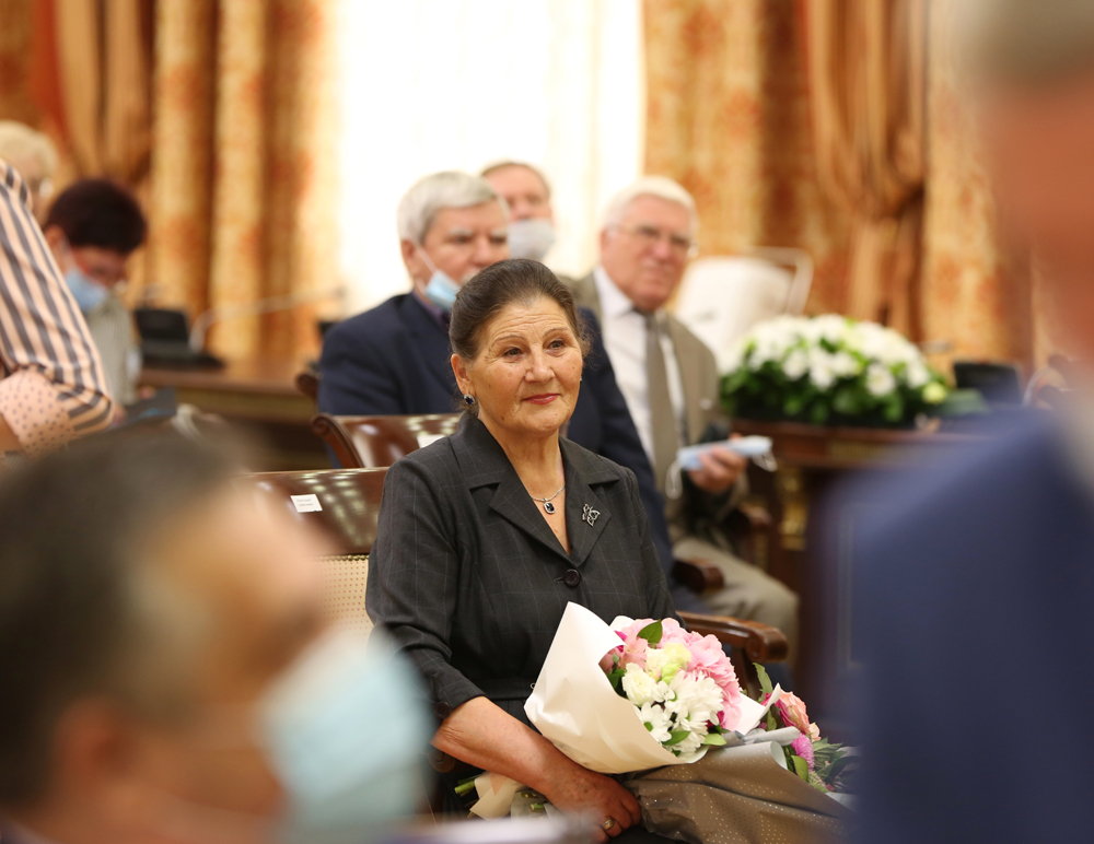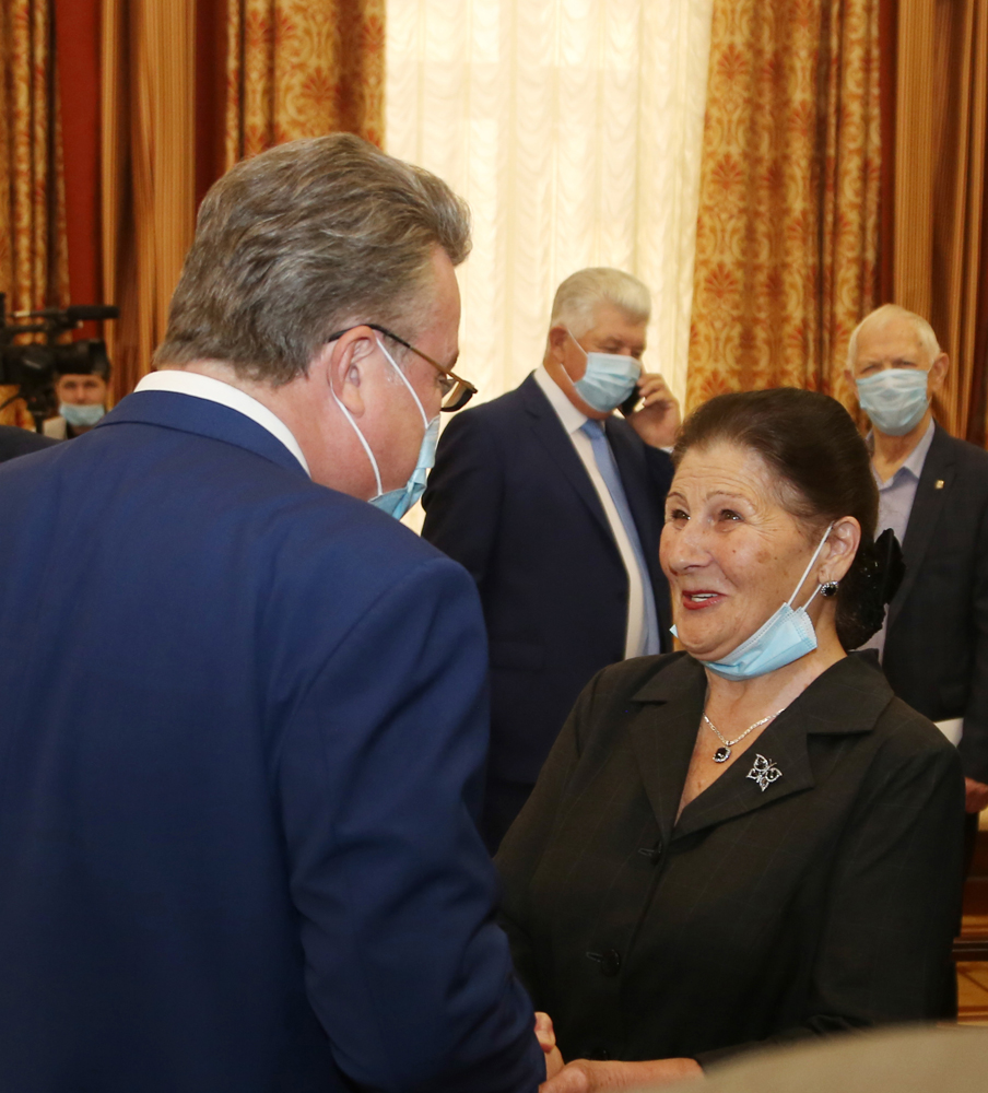 Перед началом церемонии глава города поздравил с днем рождения народную артистку России, Почетного гражданина Воронежа Екатерину Молодцову.