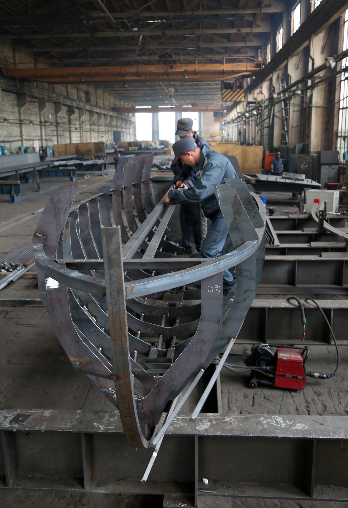Гендиректор Андрей Боровиков и руководитель конструкторского бюро №1 предприятия Сергей Широбоков рассказали мэру о том, что в настоящее время монтируется каркас корабля, за счет которого будут держаться другие элементы конструкции.