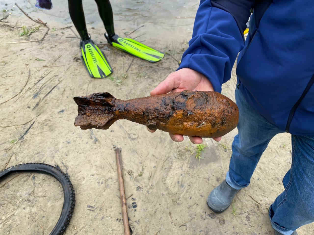 Кстати, кроме миномётного снаряда и традиционного мусора драйверы обнаружили на дне реки сумку с документами, которую в ближайшее время вернут владельцу, и колесо от телеги, которое станет экспонатом в одном из районных музеев.