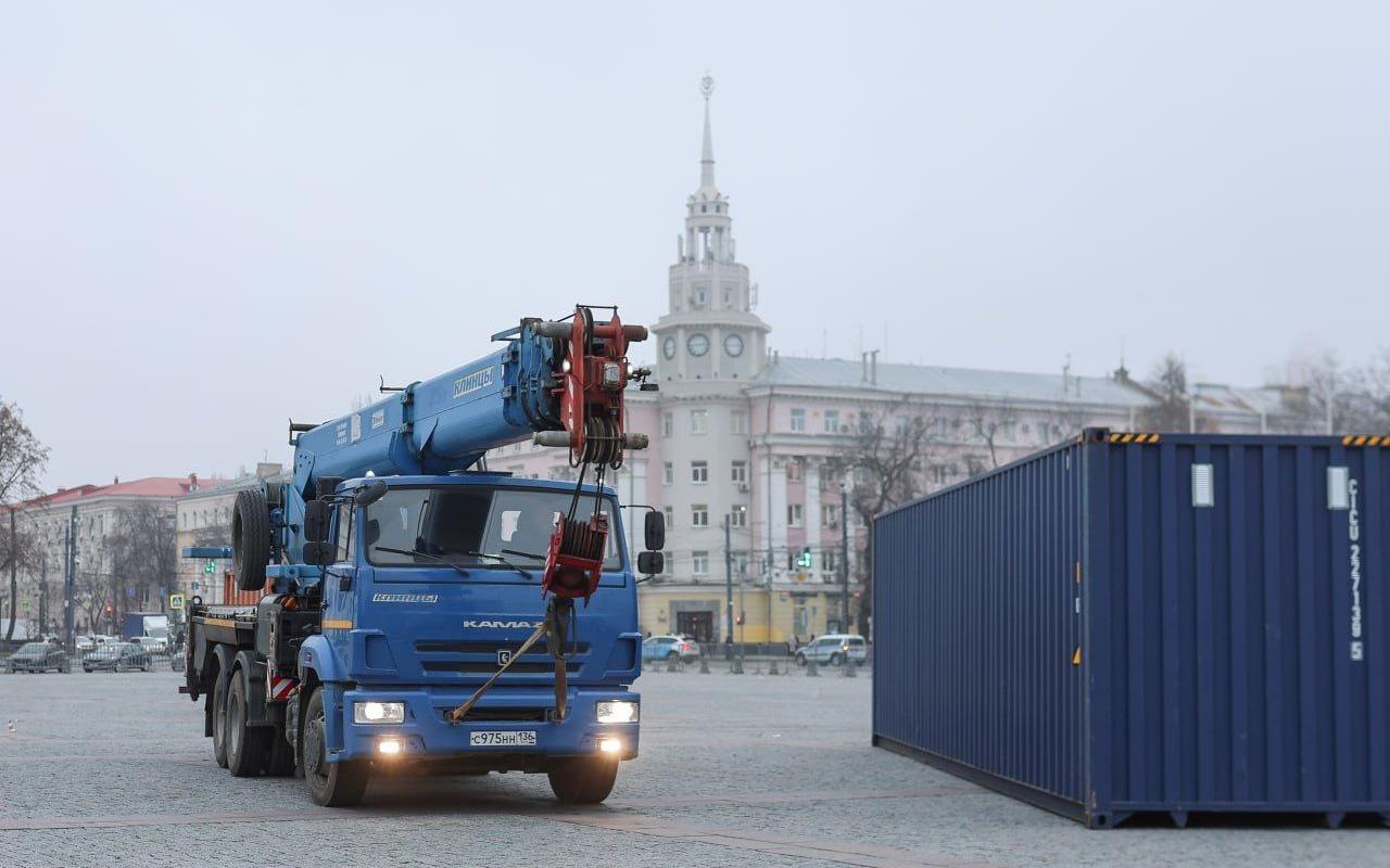 Со 2 декабря работы начались на площади – геодезисты нанесли специальную разметку. А сегодня привезли два контейнера, в которых находится главная городская ель, а также ее украшения – гирлянды, шары и восьмиконечная звезда. Традиционно оформление площади начинается со сборки ели, затем пространство будет обрастать новыми элементами праздничного убранства.