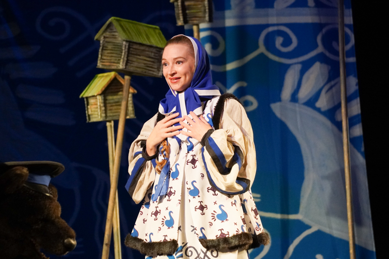 Артисты Архдрамы предлагали зрителям счастливые песни морозить и северное сияние впрок сушить. Девчонки-хваленки и Сеня Малина сумели даже медведя приручить. Звонкие песни, колоритные танцы, сущие небылицы и мыльные пузыри – такой получилась интерпретация сказок Писахова у режиссера Андрея Тимошенко.