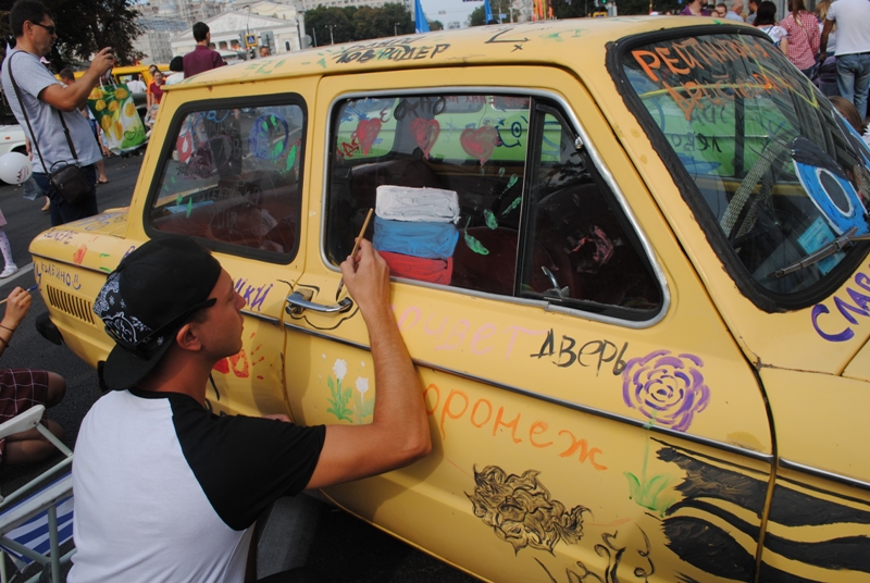 Дети с неподдельным интересом рассматривают «Запорожцы», фотографируются рядом с ними и в их салонах, а также каждый маленький гость праздника стремится оставить на ретро-транспорте свой рисунок или пожелание. Многие из них говорят, что этот автомобиль – самый красивый в строю стареньких авто.