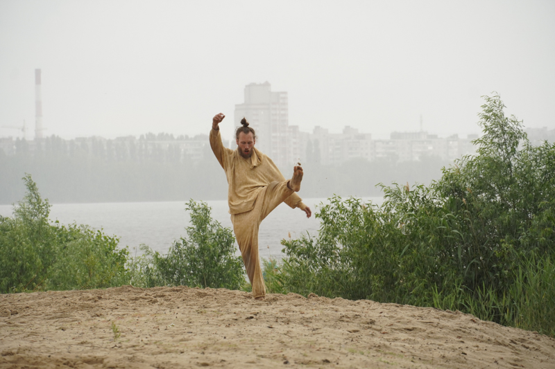 Музыкальное сопровождение, будто намеренно, не используется: движение передается под звук барабанов и голоса, который читает фрагменты из текстов Андрея Платонова. Все представление было заранее отрепетировано, однако природа, внесшая свои коррективы, предоставила артистам большие возможности для импровизации и создания новых смыслов.