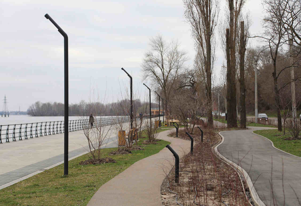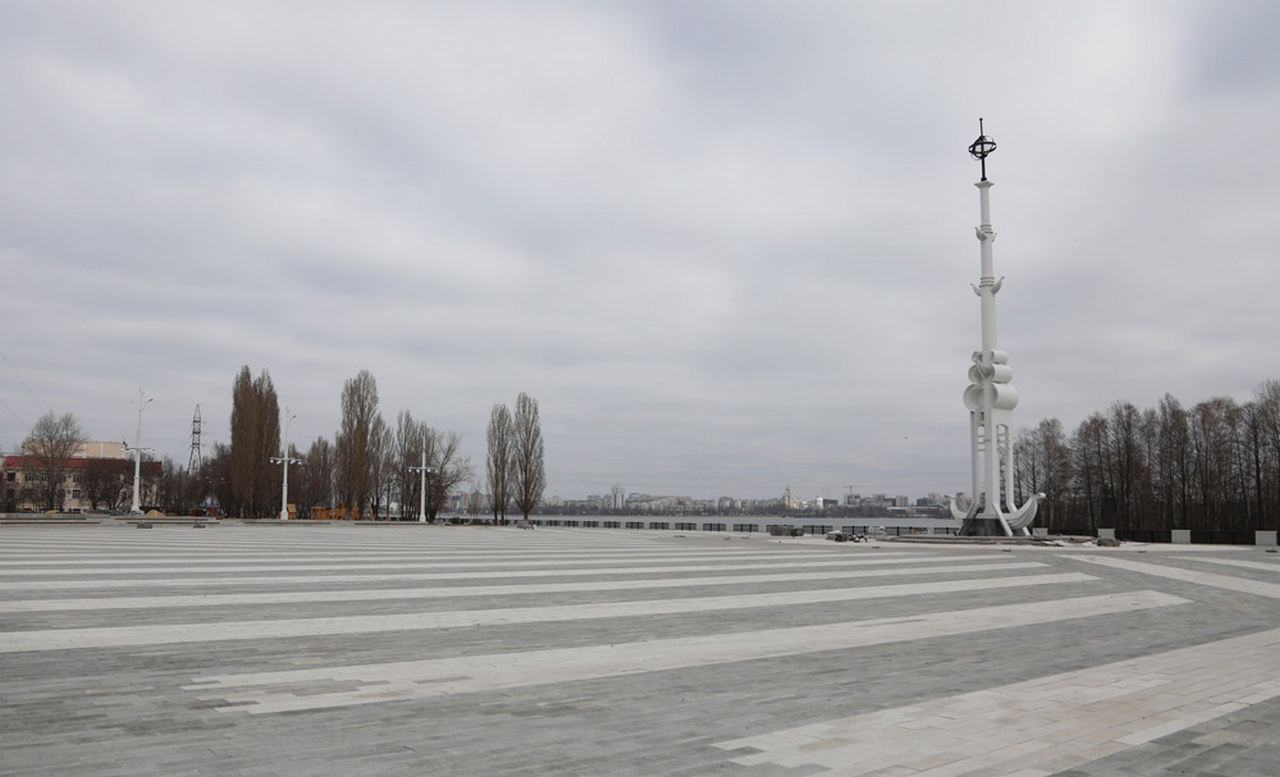 По информации подрядчика, завершено замощение от причала «Чернавский мост» до причала «Москва-16», установлены опоры освещения, смонтированы остановочные павильоны, создана пешеходная эстакада, ограждение у воды, выполнены работы по устройству подпорных стен и обновление стелы на Адмиралтейской площади.