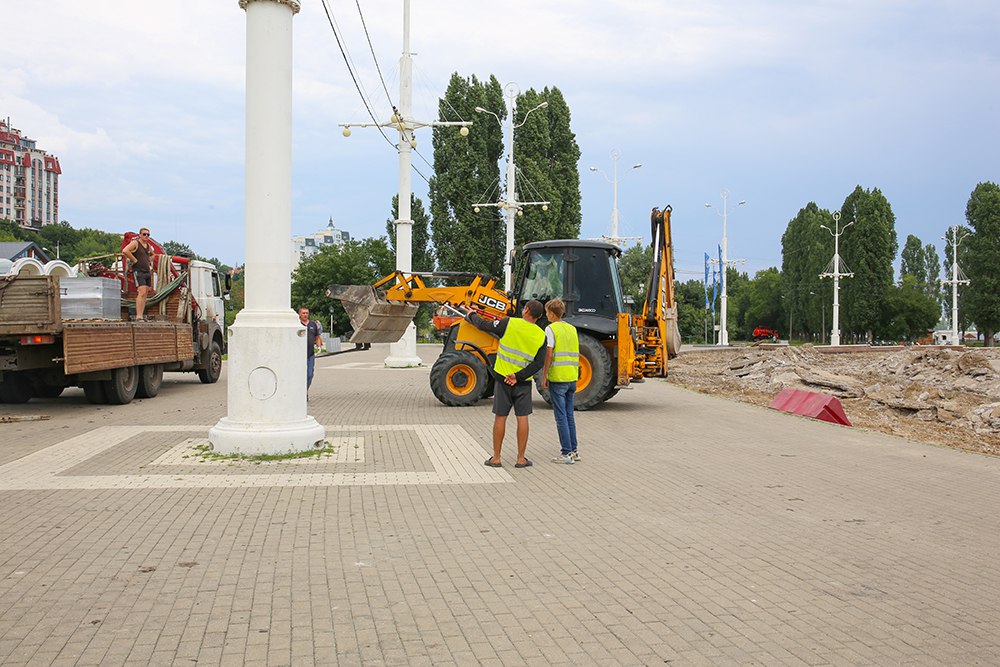 – На Петровской набережной на обоих участках сегодня работали 30 рабочих и 10 единиц техники. Подрядная организация учла замечания и наращивает темпы, на этой неделе переходит от демонтажа к стадии строительства, – рассказал мэр. – На променадной части завершается фрезерование асфальта, демонтировано чугунное ограждение, разобраны теннисный корт и причал Москвы-16, спланировано земляное полотно для монтажа покрытия. Запланирован и старт монолитных работ по восстановлению парапетной части. Чугунные элементы уже отобраны для обновления и монтажа на исторической части набережной. Вело- и беговые дорожки спланированы с учетом сохранения деревьев.