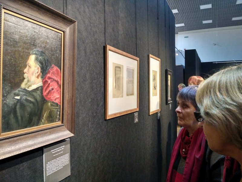 Встречают посетителя самый известный автопортрет Крамского и слова под ним, которые можно расценить как духовное завещание мастера: "Человек рожден жить и делать дело непременно в кругу товарищей". А открывается экспозиция ранними рисунками Ивана Николаевича, датированными годами его обучения в Академии художеств. Особое внимание организаторы обращают на эскиз к конкурсной картине на получение золотой медали (в ту пору – уже второй по счету) «Поход Олега на Царьград. 1861». Вверху эта вещь «сдобрена» красным сургучом – личной печатью ректора академии Федора Ивановича Бруни – и его собственноручным вердиктом «Утверждено ректор Бруни».