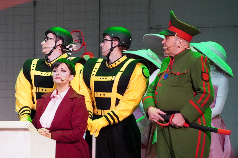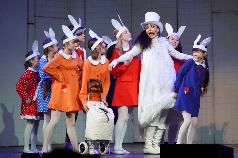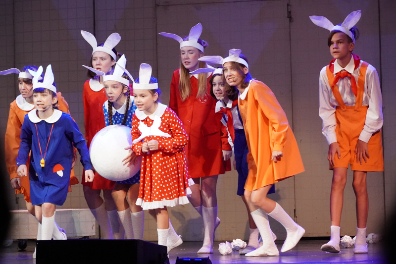 Песни в спектакле – часть сюжетной истории, их исполняют не только профессиональные артисты, но и дети, которые занимаются в детской студии «Карамболь». Ребята, как и все школьники, сейчас на каникулах, но отдыхать приехали на гастроли вместе с взрослой труппой театра, оркестром и танцовщиками. Всего – около ста человек!