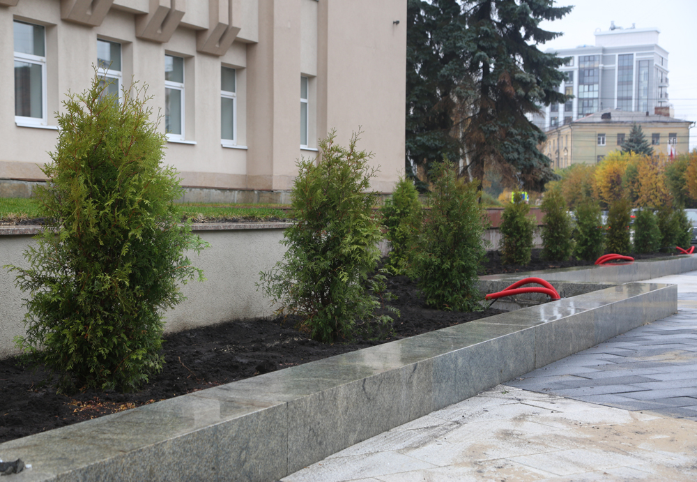 Помимо этого, к скверу примыкает тротуарная часть, что идёт вдоль домов № 5 и 6 по площади Ленина. Его благоустройство ведут за счёт частных инвестиций и оно тоже близко к завершению.