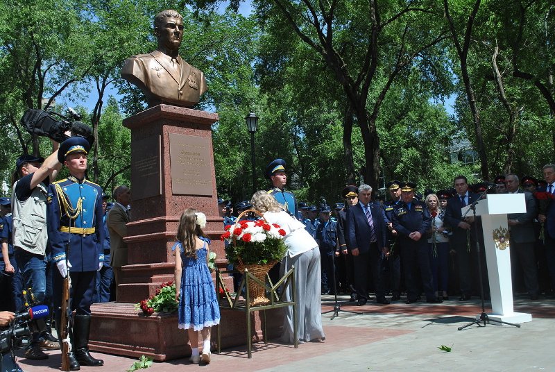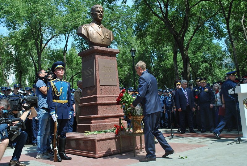 На торжественном митинге присутствовали представители областной и городской властей, курсанты Суворовского училища и Военно-воздушной академии, учителя и школьники, председатель Комитета Совета Федерации по обороне Виктор Бондарев, родственники погибшего пилота и десятки неравнодушных горожан.