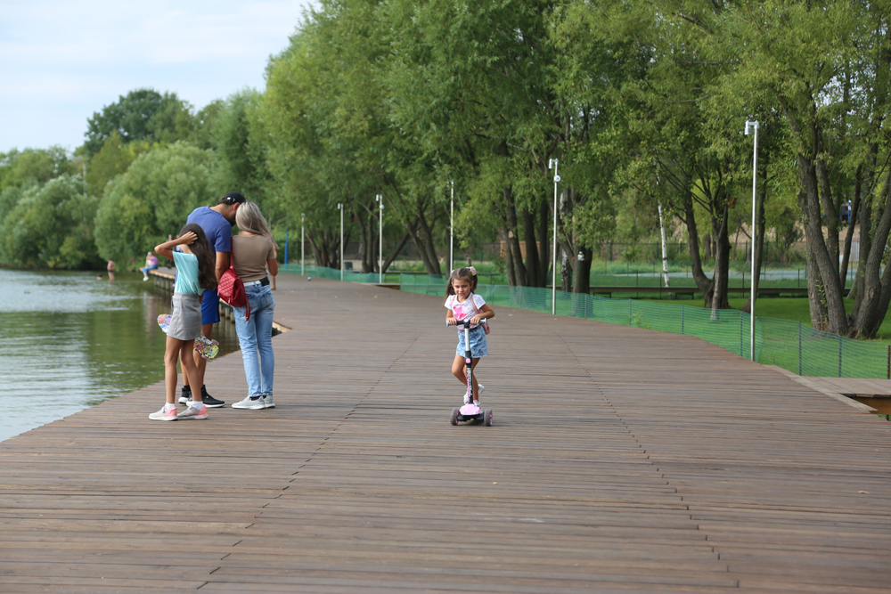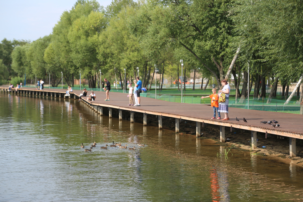 А вот протянувшийся вдоль водохранилища пирс уже готов полностью, и по нему вовсю гуляют воронежцы. Рядом организован прокат лодок, за которыми в выходные выстраивается очередь. Устланная газоном набережная станет местом для пикников. Напомним, что во время прошлого визита монтаж пирса только начинался.