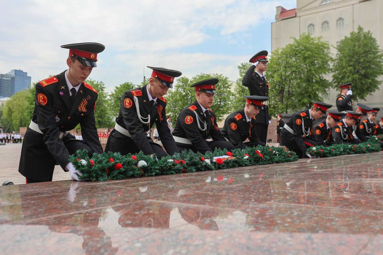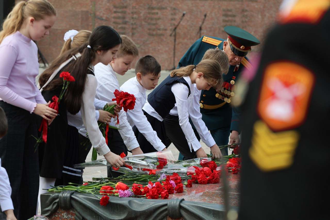 После минуты молчания кадеты возложили гирлянду Памяти к Вечному огню. Завершилась церемония возложением цветов к Могиле Неизвестного Солдата.