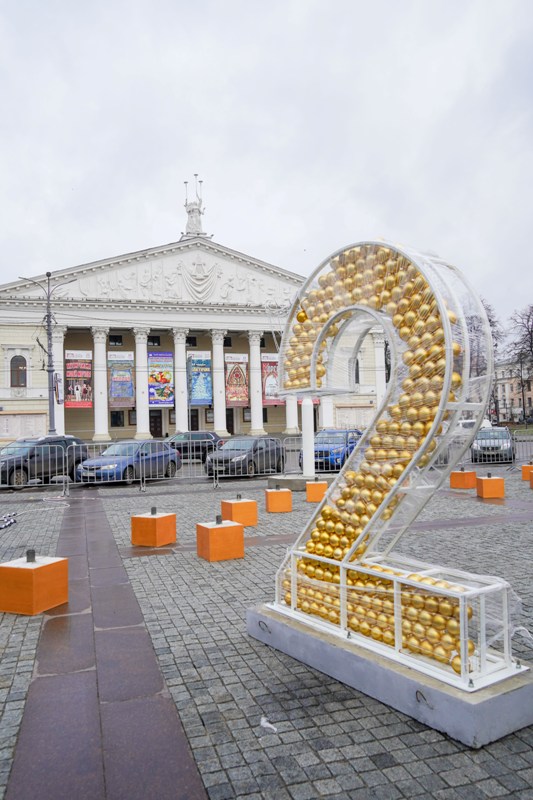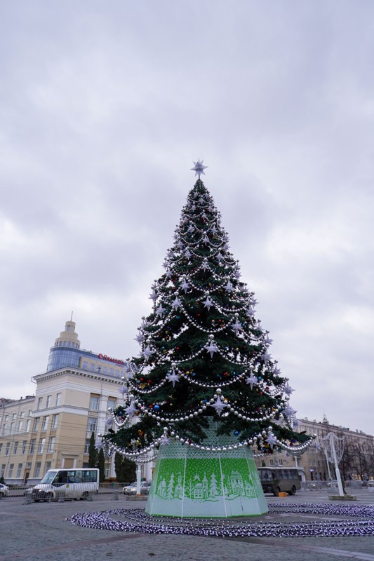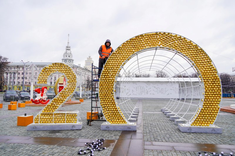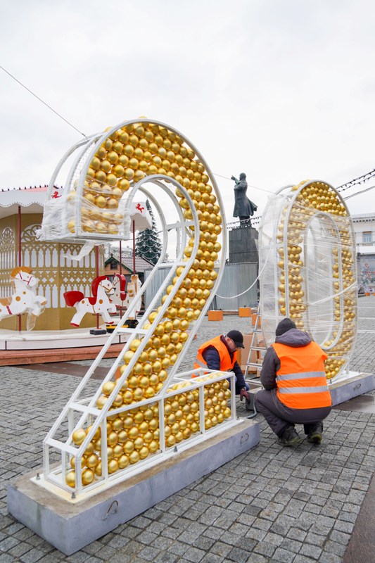 Тысячи шаров и два километра гирлянды – пл. Ленина готовят к новогодним праздникам. Основные конструкции установили здесь еще 15 декабря, теперь монтируют фотозоны, арку и освещение.