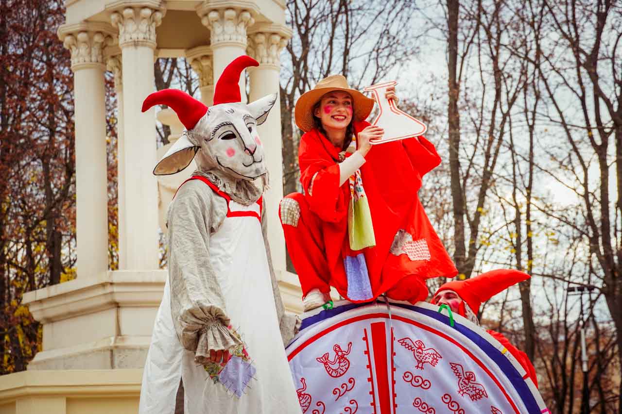 Праздничная программа «Маршака» развернулась у фонтана. Здесь маленькие зрители вместе с родителями увидели новый уличный спектакль ВАУ театра «Коза и коса». Юных зрителей развлекали скоморохи, Коза и девушка по прозвищу Коса.