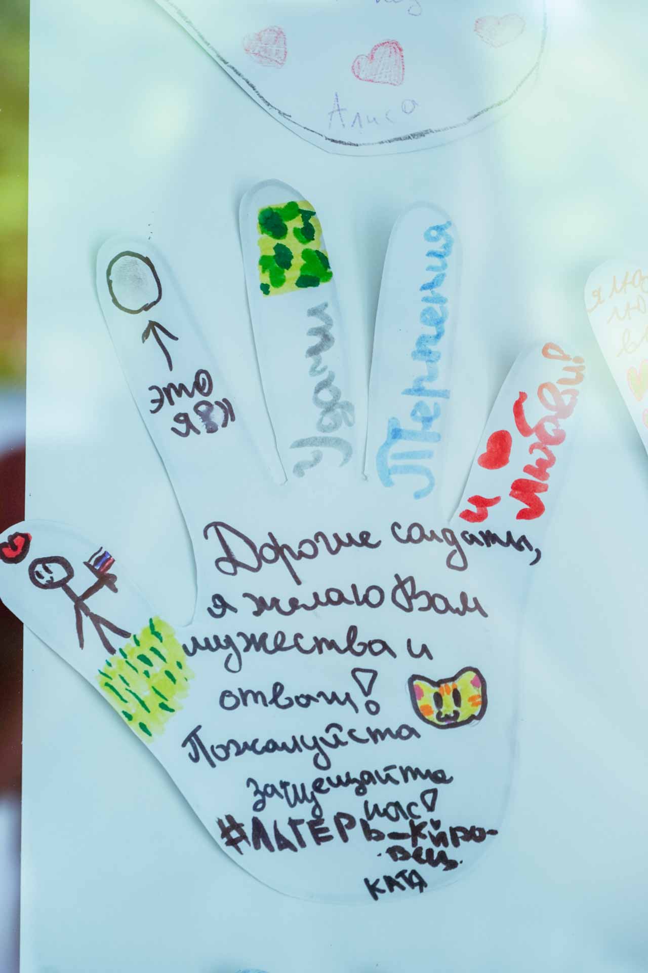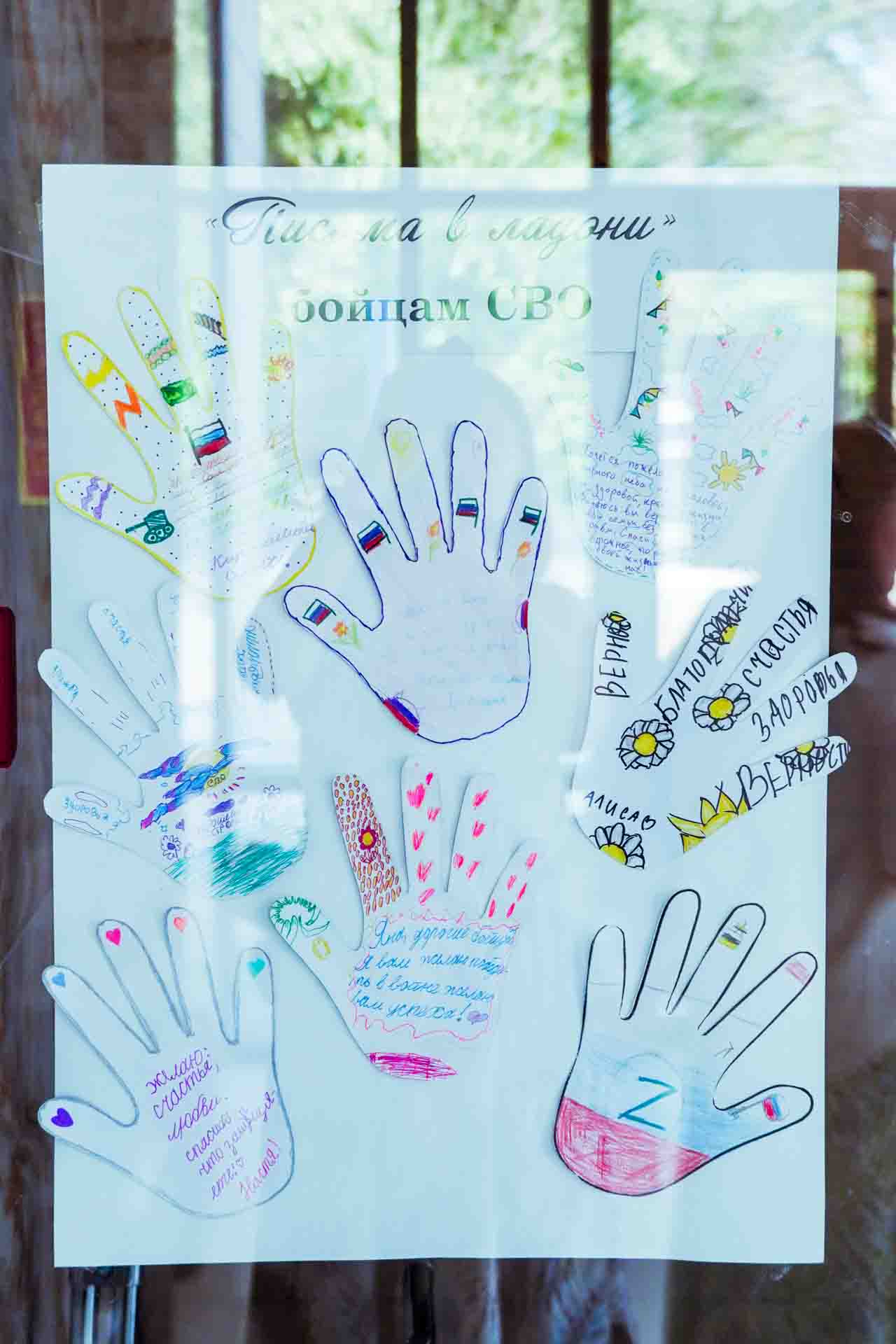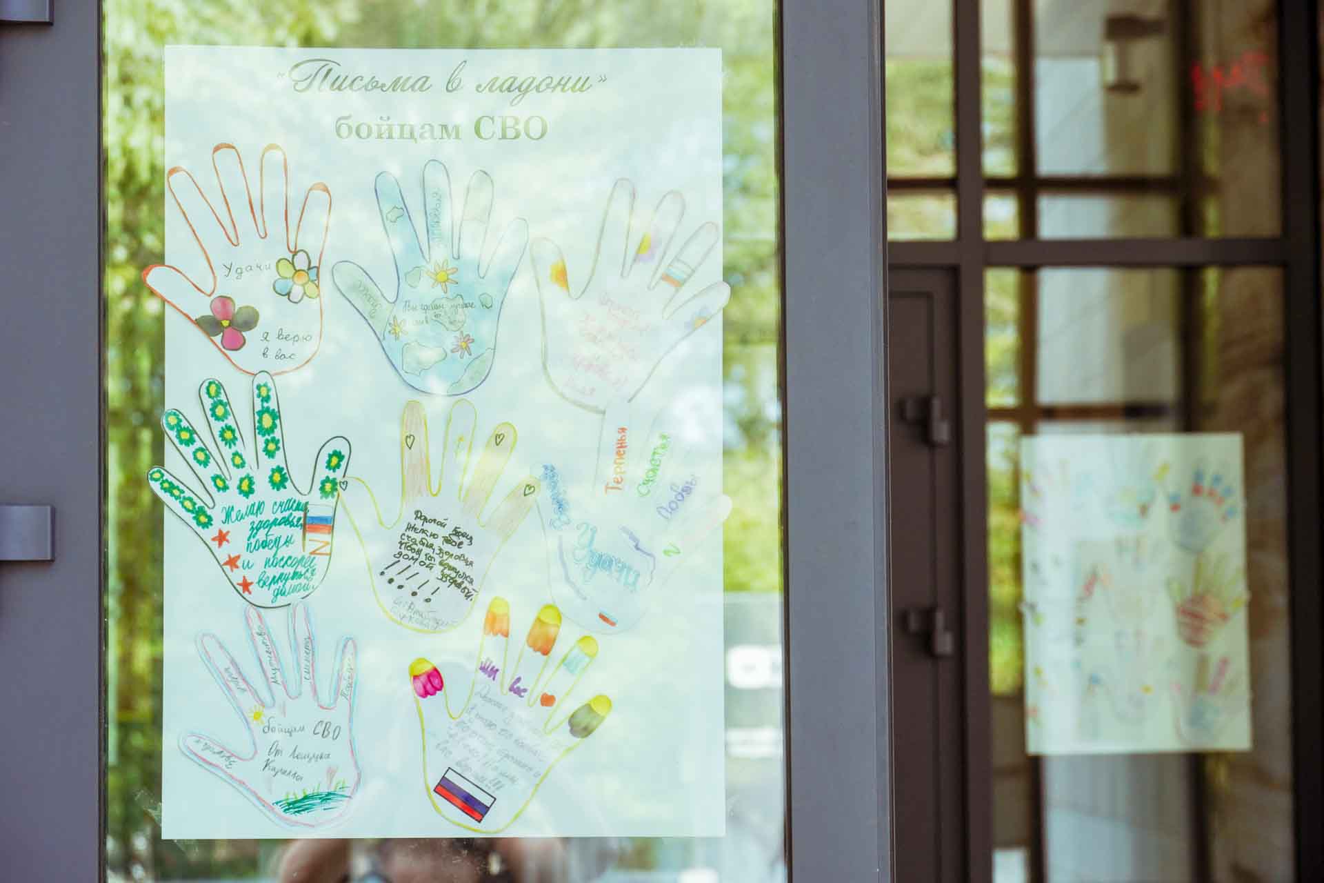 «Письма в ладони» разместили на входе в Центр военно-патриотического воспитания «Музей-диорама», а позже эти послания благодаря поддержке Левобережного Совета ветеранов отправят «за ленточку» и передадут участникам специальной военной операции. Договоренности с Советом ветераном Левобережного района, который совершает выезды на передовую с благотворительными грузами, уже достигнуты.