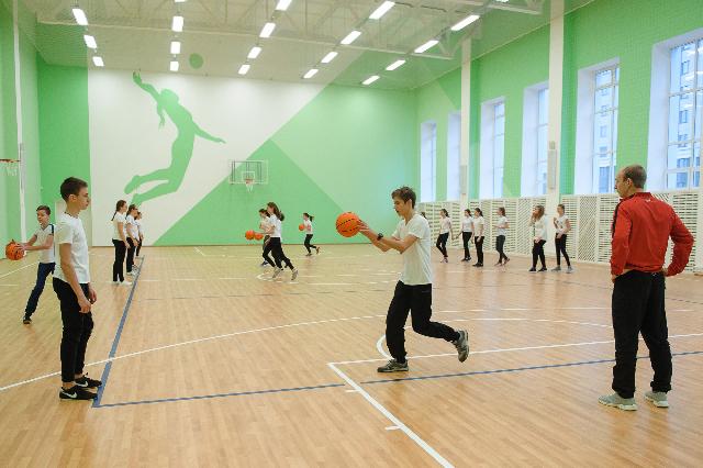 Особое внимание в школе уделено спорту. В проекте здания предусмотрена физкультурно-спортивная зона с футбольным полем и сектором для прыжков, круговой беговой дорожкой, совмещенной с прямой беговой. На пришкольной территории обустроены комплексная спортивная площадка, теннисный корт, площадки для волейбола, баскетбола, пионербола, бадминтона, гимнастики.