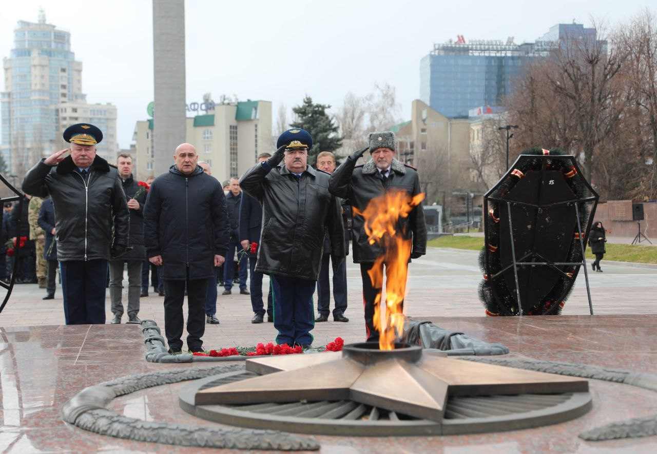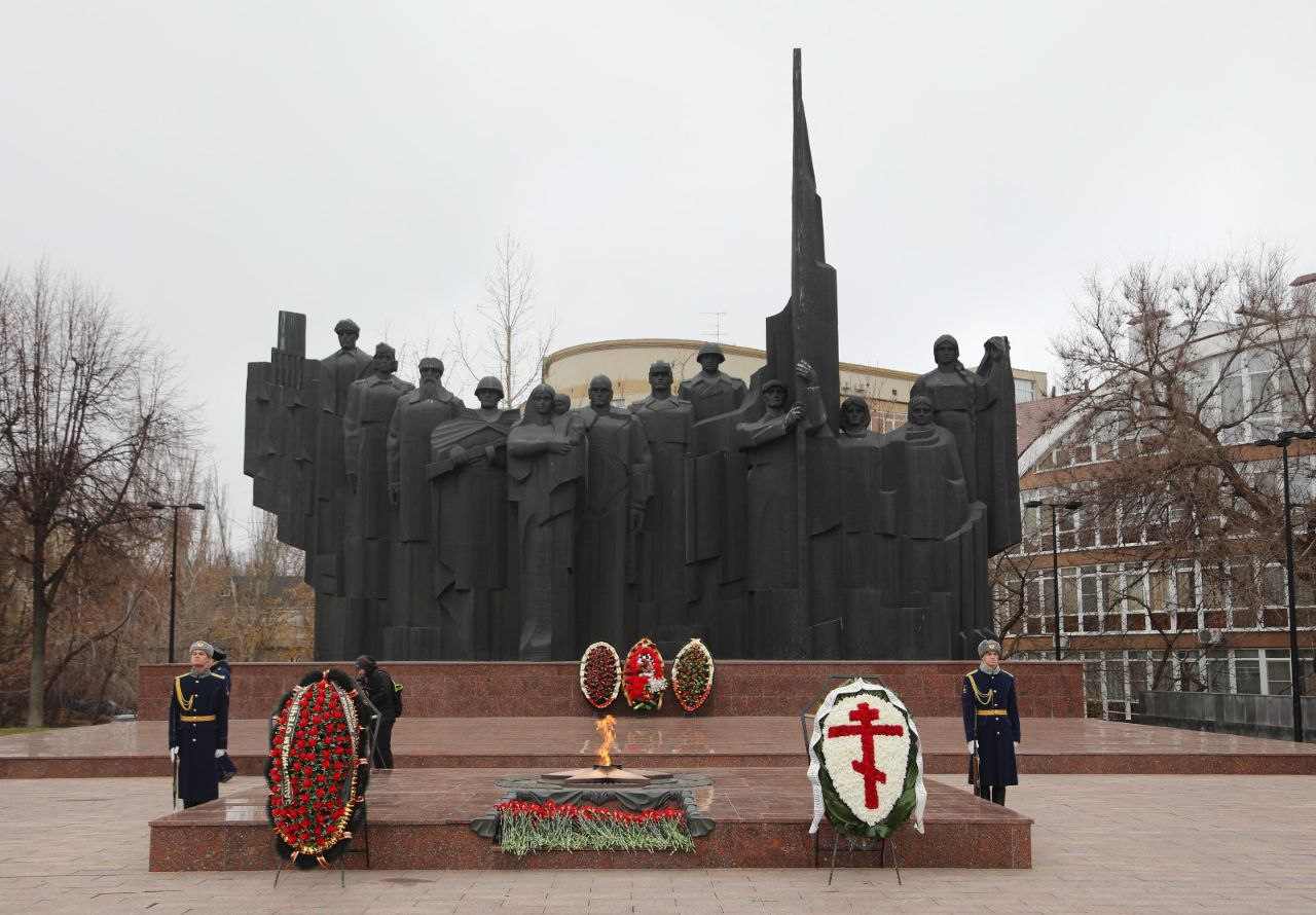 В память о советских и российских воинах, погибших в боевых действиях на территории страны и за её пределами, на площади Победы в Воронеже тоже прошла церемония возложения цветов и венков.