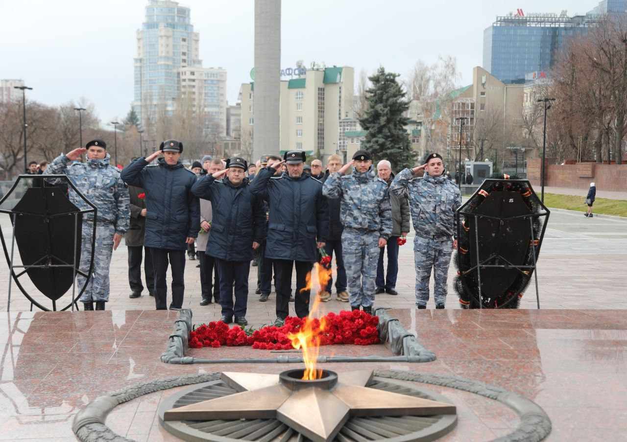 Почтить память павших воинов к Вечному огню у могилы Неизвестного солдата пришли глава региона Александр Гусев, главный федеральный инспектор по Воронежской области аппарата полномочного представителя Президента РФ Сергей Петряшов, мэр Воронежа Сергей Петрин, председатели областной и городской Дум Владимир Нетёсов и Владимир Ходырев, представители правоохранительных органов и силовых структур, общественных, ветеранских и молодёжных организаций, а также духовенства.