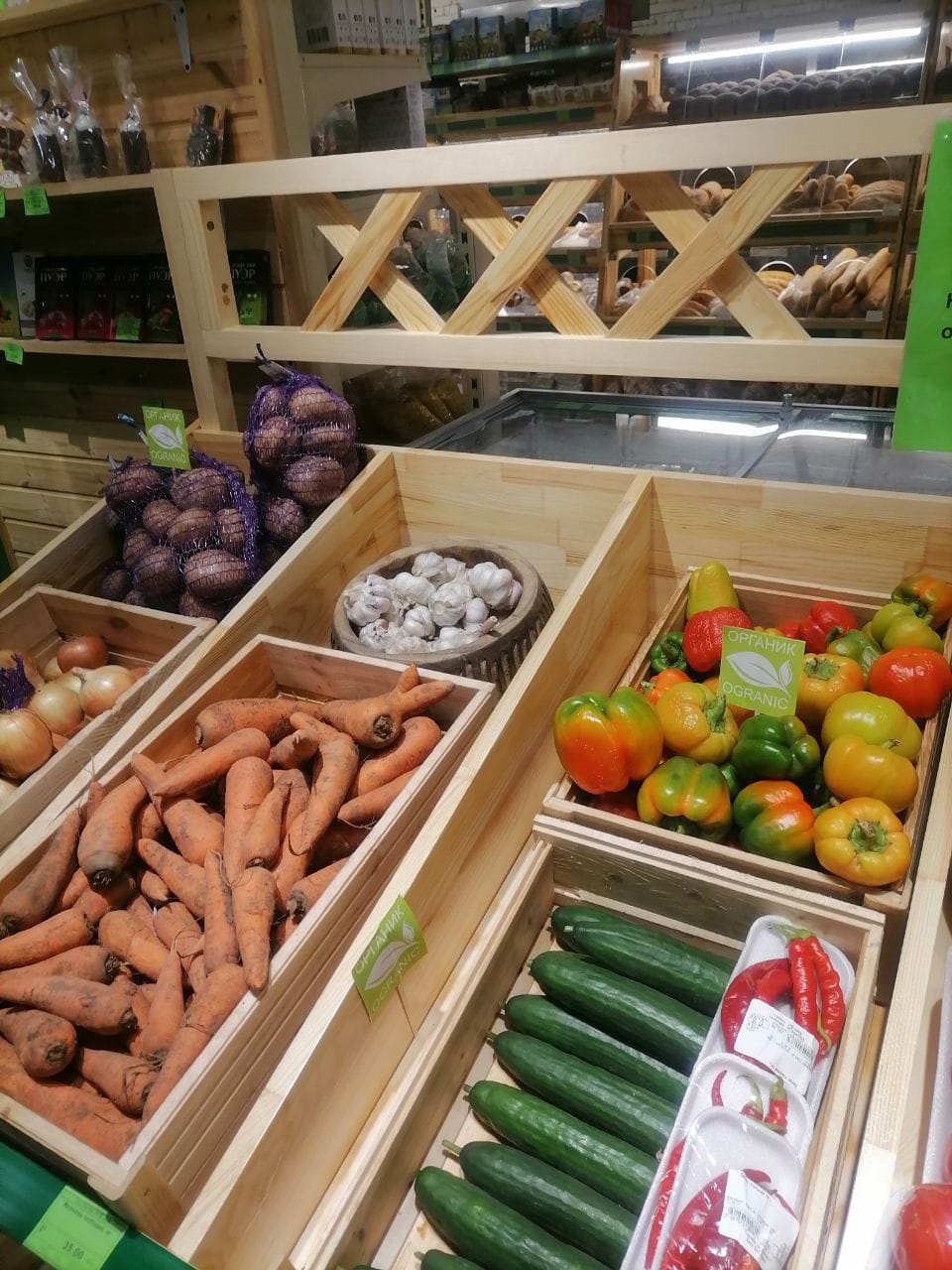 Также здесь продаются органические сертифицированные воронежские овощи и зелень: картофель, томаты, перцы, малина.
