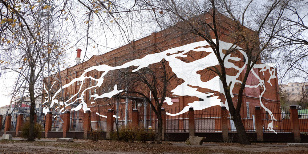 Художник Ян Посадский предложил нанести краской на фасаде здания «Россетей» силуэт русла реки Воронеж по карте 1899 года.