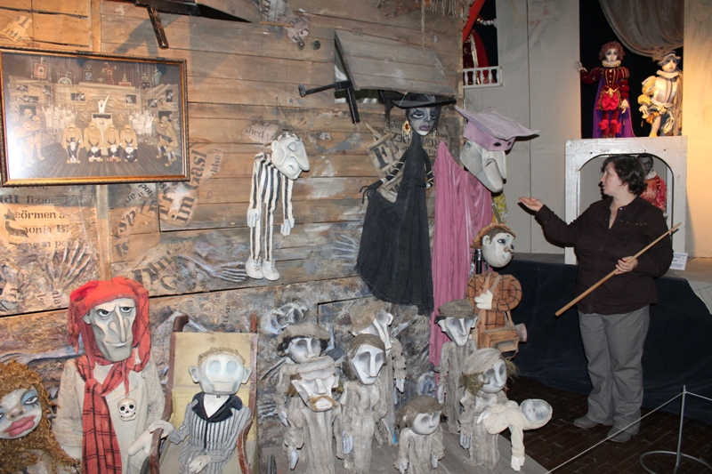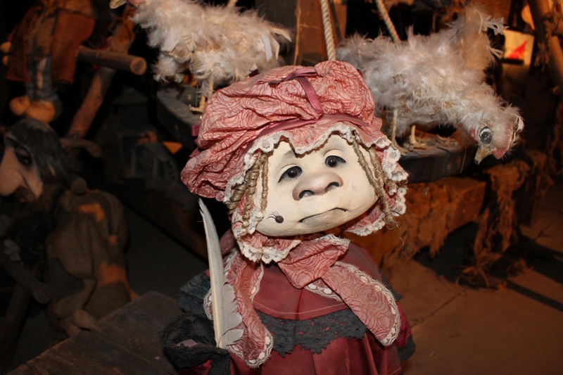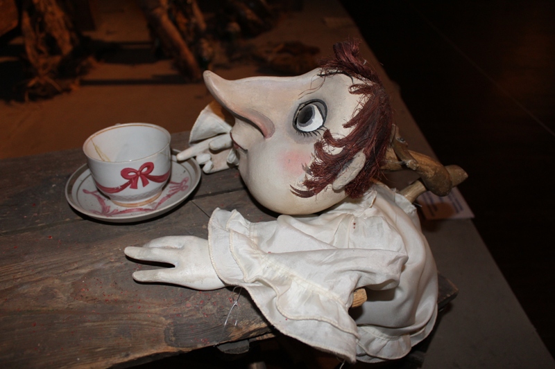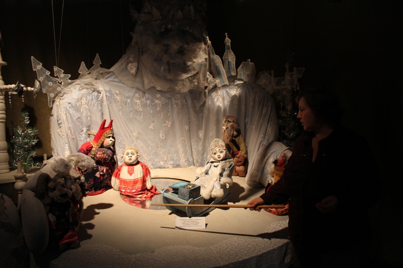 Знакомство с ретроспективной составляющей «шутовской» сцены продолжилось в Зимнем саду, где по периметру выставлены куклы, уже «отыгравшие» свое – в основном, исполины в хороший человеческий рост (а то и выше). Рассказывала о них Ирина Бойкова – заведующая музеем театральной куклы. Куда после прогулки по Зимнему саду и проследовали гости: продолжая слушать Ирину Петровну, увидели воочию не только рукотворных персонажей, но и своего рода сценки из спектаклей. Эффектная, изобретательно подсвеченная экспозиция организована таким образом, что герои постановок как бы «помещены» в драматические обстоятельства, в которые автоматом попадает и зритель. Что и имело место быть в очередной раз: питерцы охотно «общались» с музейным народцем – внимательно рассматривали кукол, пробовали себя в качестве кукловодов, фотографировались. И, уже спеша на поезд, обещали непременно вернуться – ради возможности узнавать о деталях сценической и закулисной «кукольной» жизни еще и еще.