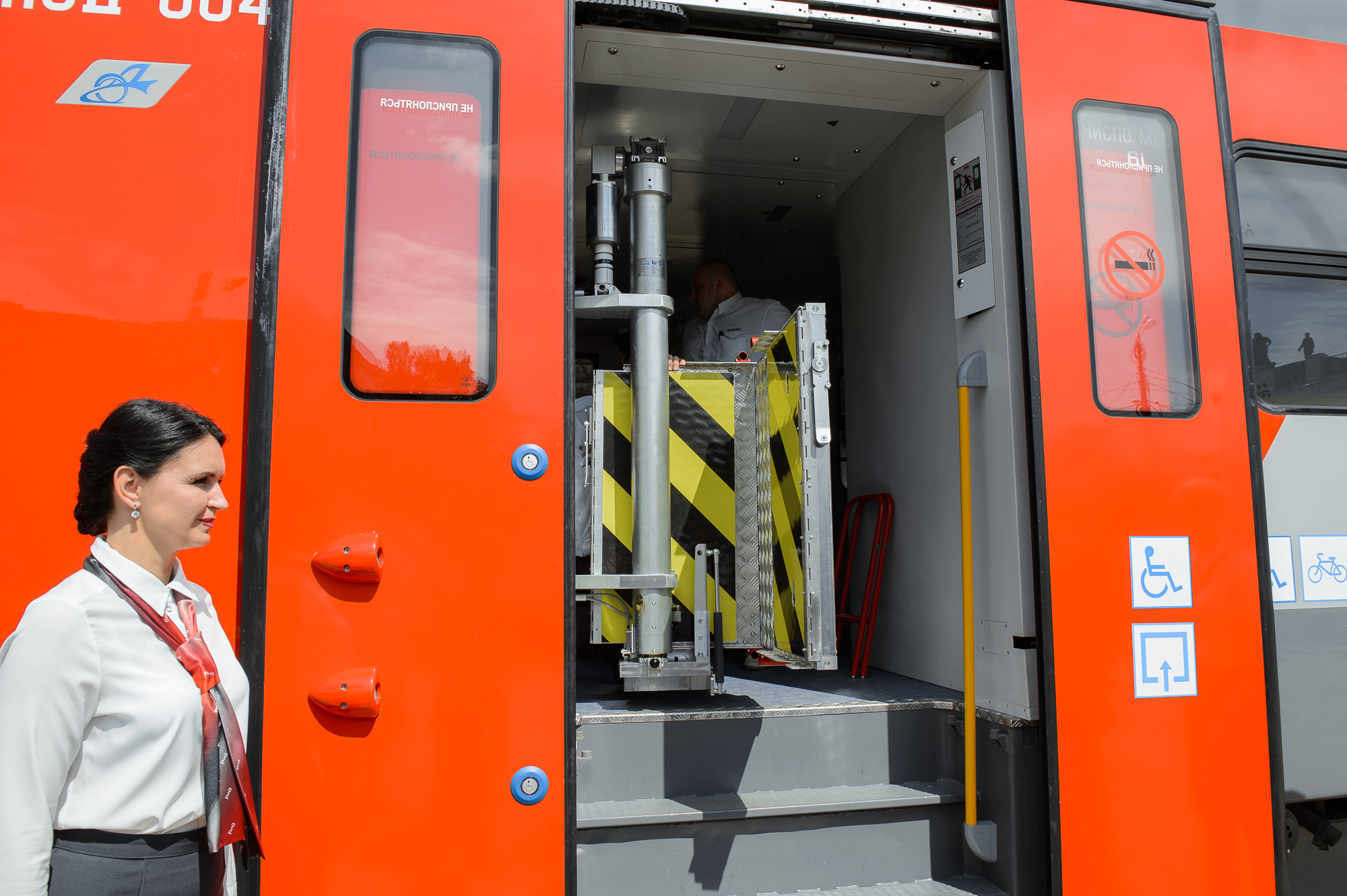 Отдельно говорится о создании условий для инвалидов: наличие подъемника для посадки и высадки, места для крепления инвалидных колясок в салоне, туалеты с поручнями, также размещены таблички со шрифтом Брайля.