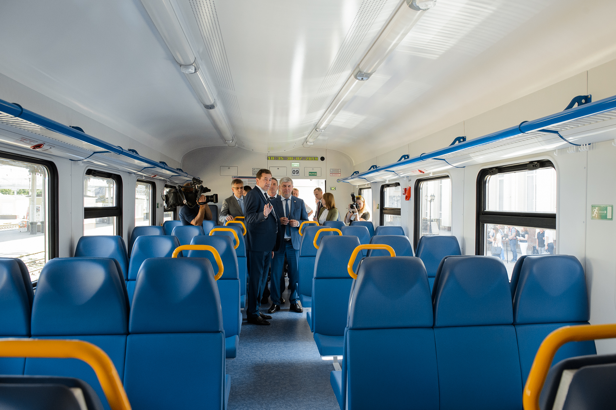 Губернатор Александр Гусев высоко оценил комфортабельность электропоезда. Ожидается, что новые поезда пойдут по наиболее востребованным в регионе направлениям в течение августа.