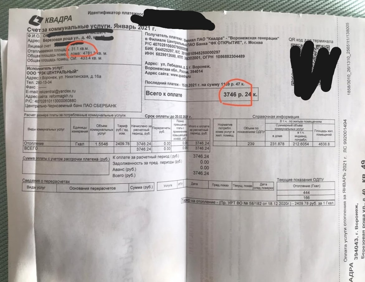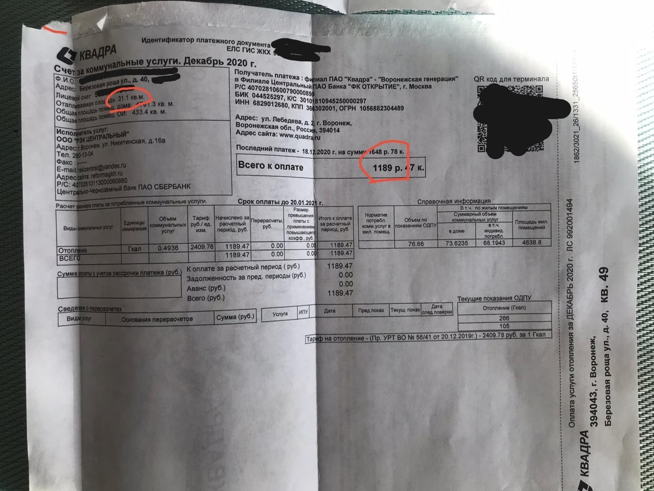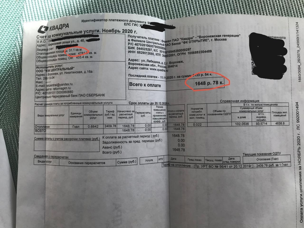 Ещё один казус с платой за отопление произошел недавно в Воронеже. Собственник «однушки» площадью 31 кв. м опубликовал 16 февраля в группе «Мой и твой Воронеж» в соцсети «ВКонтакте» платежки за отопление с ноября по январь. Январская плата оказалась едва ли не втрое больше предыдущих.