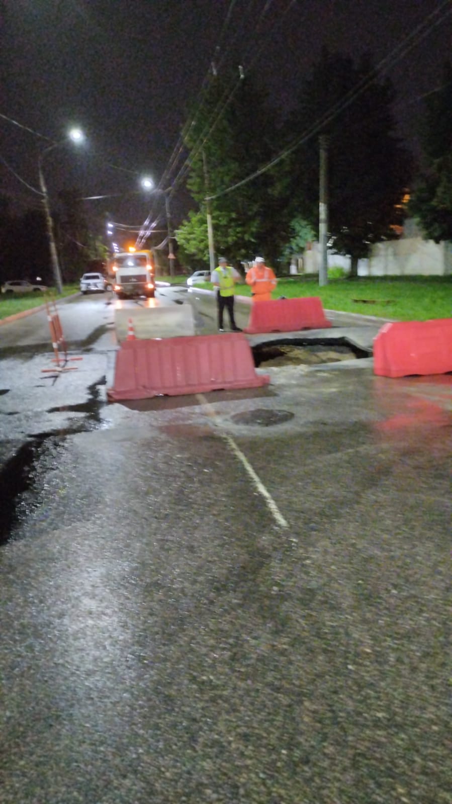Тем же вечером место происшествия было огорожено. Власти пообещали принять все меры по устранению промоины и восстановлению дорожного покрытия.