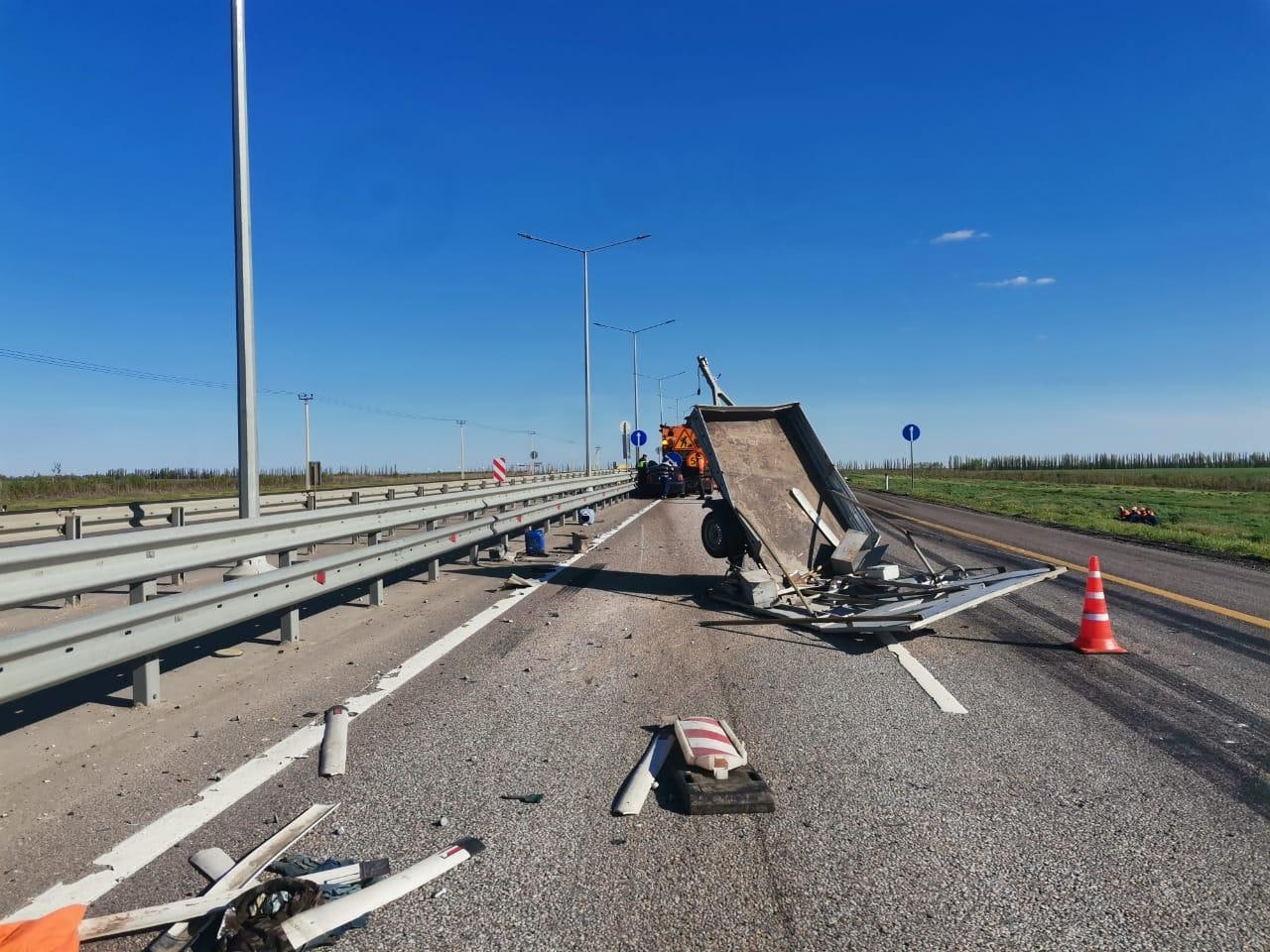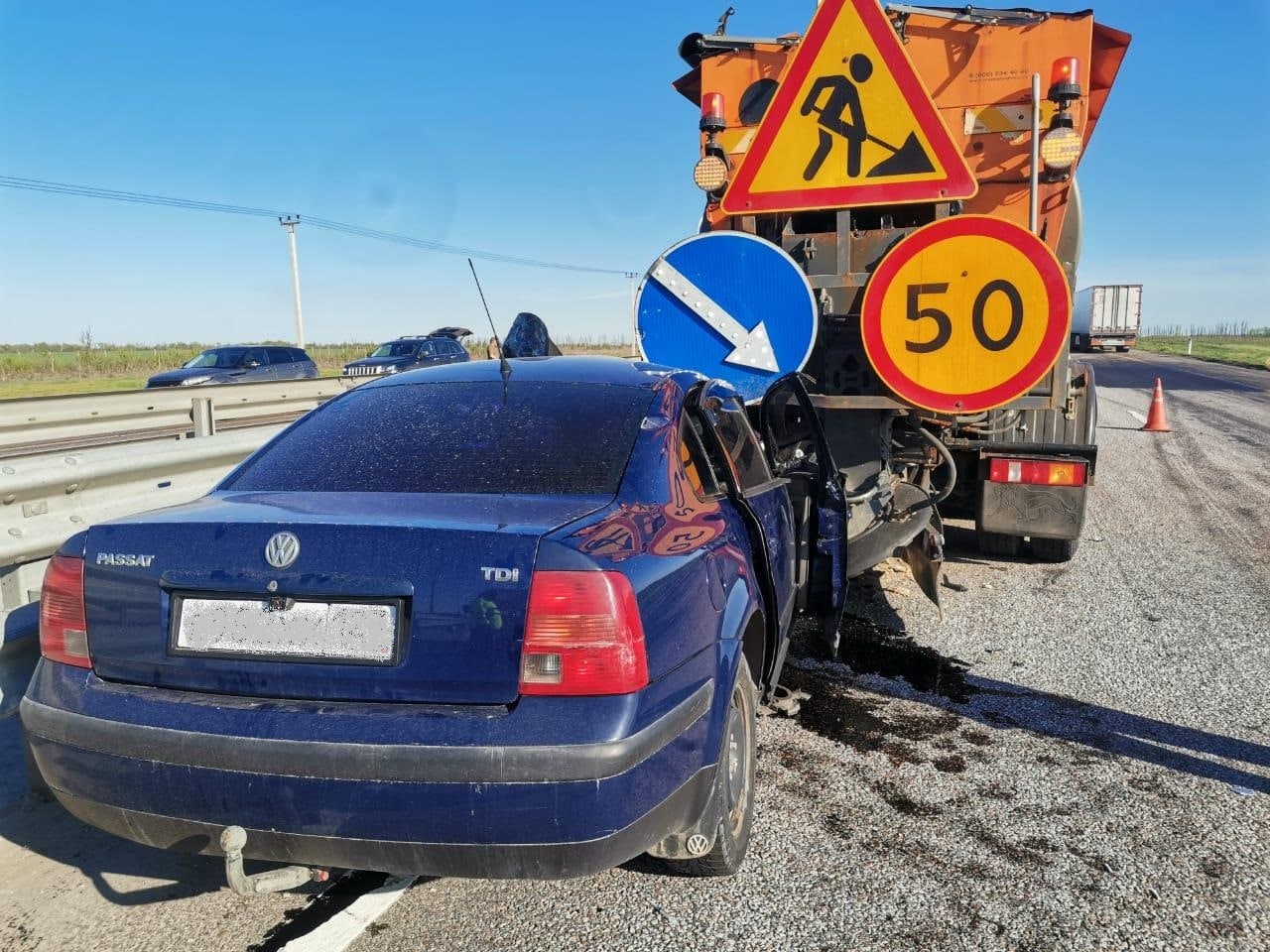 ДТП случилось примерно в 16.05 на 543 км трассы М-4 «Дон». Здесь 44-летний краснодарец на своем «Фольксваген Пассат» налетел на стоящий на дороге прицеп, который был оставлен дорожными рабочими, производившими ремонт трассы. А затем иномарка врезалась в хвост КамАЗа.