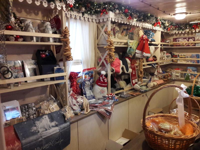 Состав состоит из девяти вагонов для игр и квестов, есть там и вагон-ресторан, где повара предлагают в меню уникальные северные блюда по рецептам Деда Мороза. Но наиболее популярный вагон – это его приёмная, где можно увидеть доброго волшебника и пообщаться с ним. Здесь он загадывает замирающим от восторга ребятишкам загадки, а они читают ему стихи и получают подарки. Замыкает состав вагон-лавка, где все желающие приобретают сувениры и сладости Русского Севера.