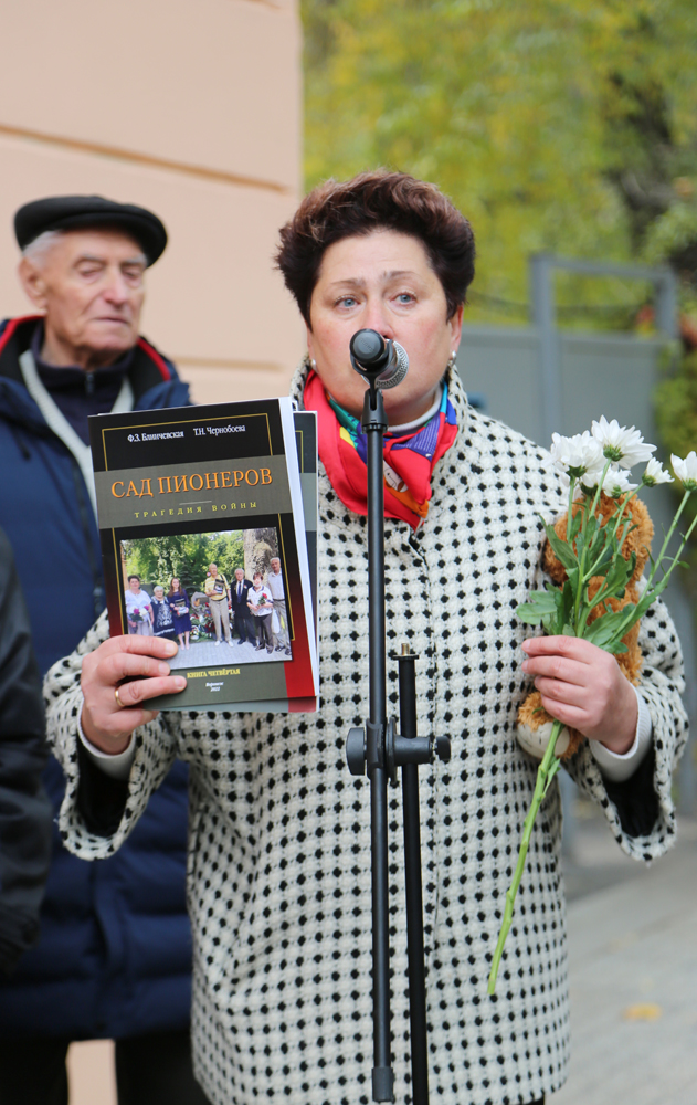 – После обсуждений было принято решение, что знак увековечит память о ребятах, погибших не только в Саду Пионеров, но и во всем городе, а также о раненых и оставшихся в живых детях в годы Великой Отечественной войны. Новый памятный знак олицетворяет собой дерево – дуб, расколотый осколками. Сзади выбиты строчки, посвященные известным поэтом Робертом Рождественским детям войны, а на фасаде – надпись с информацией о том, сколько детей погибло в Саду Пионеров 13 июня 1942 года, – рассказала на церемонии открытия Фаина Блинчевская.
