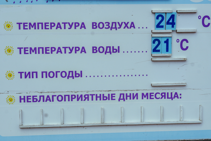 Вход на пляж стоит в этом году 150 руб. Чек действителен целый день. Здесь же на информационном табло висит сообщение о температуре воздуха и воды.