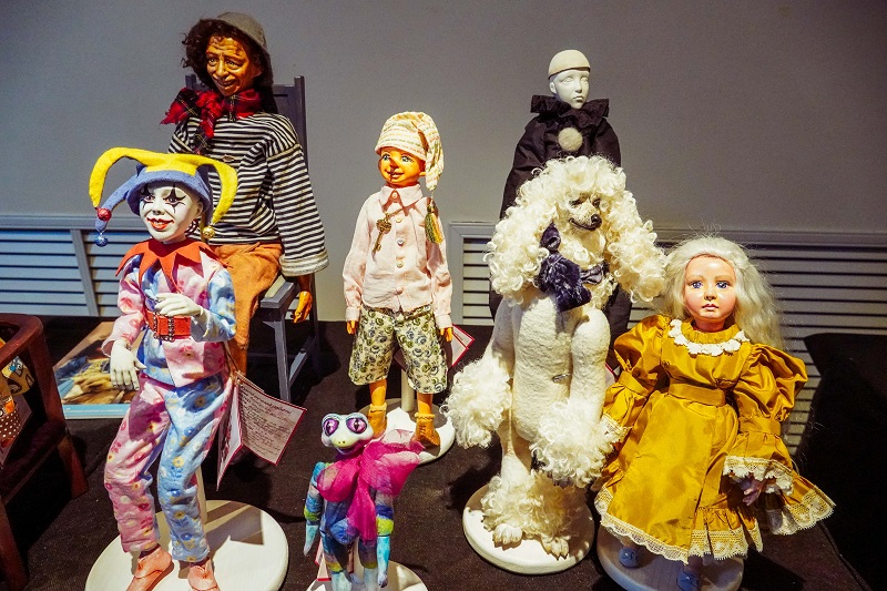 В экспозиции представлена кукла с кудряшками Николая Павлова, ставшая лицом выставки «Кукольное поМИШАтельство», ее можно видеть не только в музее, но и на афишах. Иван Грозный выставил только одного мишку Тедди – остальных раскупили. Мастер Татьяна Митрофанова из г.Лобня на отведенном уголке создает домашнее пространство, на примере показывая, как авторская кукла становится частью интерьера. А Ирина Малева из Якутска прислала на воронежскую выставку героев «Золотого ключика», с этой сказочной историей она участвовала на тематической выставке в столице.