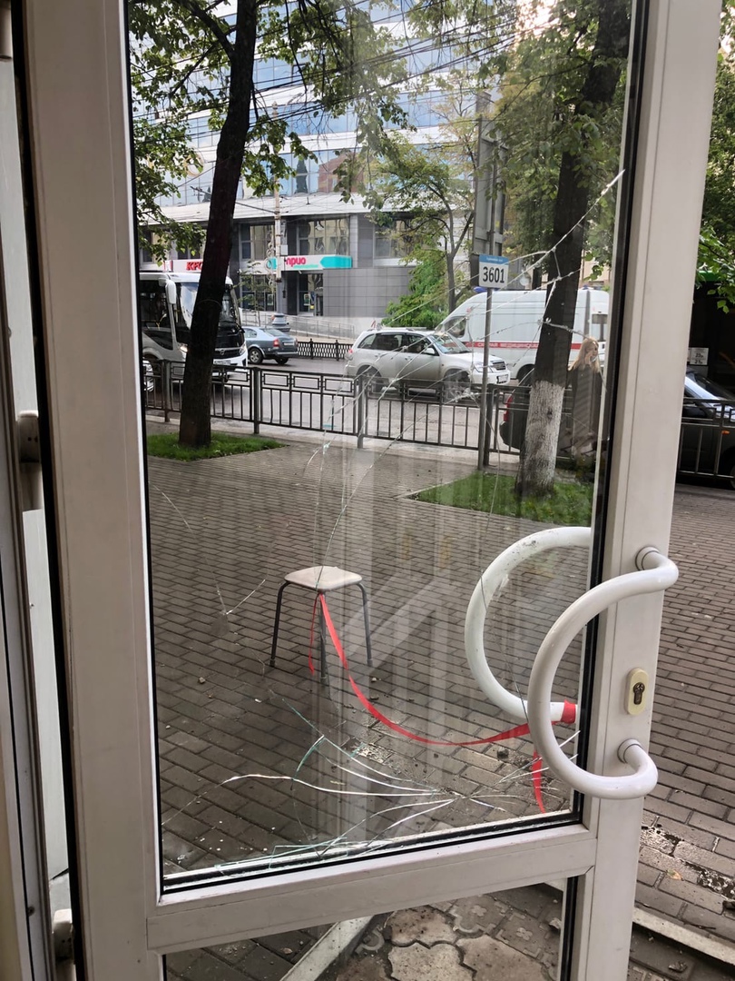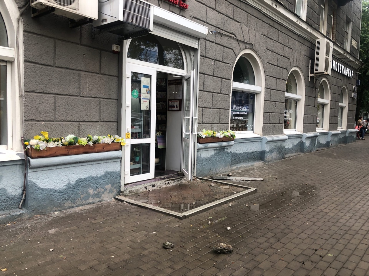 Упавшие элементы даже разбили стекло на двери цветочного магазина. К счастью, в этот момент прохожих на центральной улице города не было.
