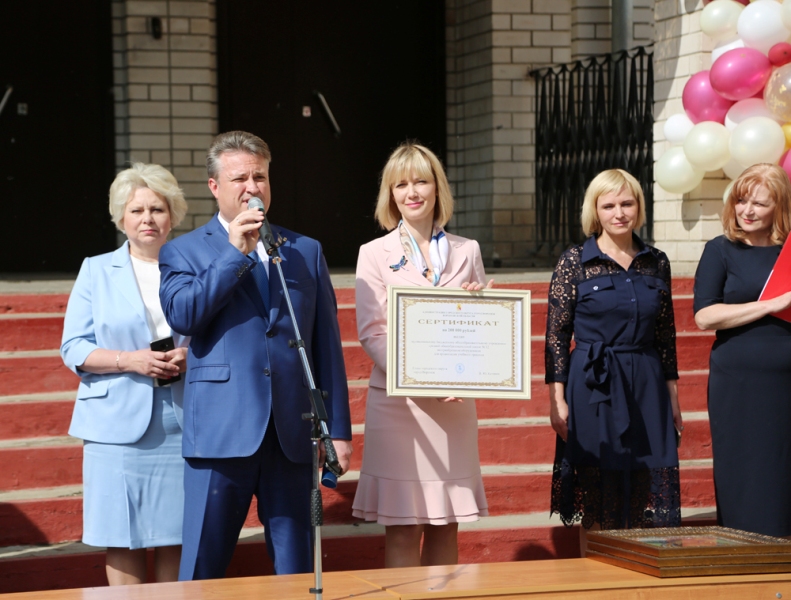 Глава города поздравил с праздником также педагогический коллектив школы и родителей выпускников, а директору Владимиру Соколову вручил денежный сертификат на приобретение оборудования для организации учебного процесса. Как отметил Владимир Николаевич, на эти средства решено обновить «лицо» учебного заведения – поменять двери и окна, а также обустроить школу по всем требованиям доступности.
