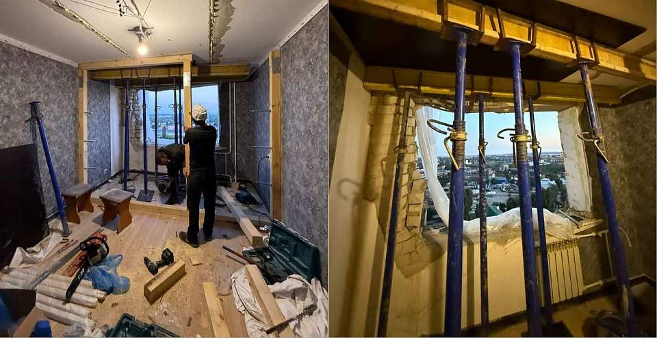 В квартире, получившей наибольшие повреждения, уже ведутся подготовительные работы для усиления плиты перекрытия. Для восстановления конструкции специалисты установили поддерживающие конструкции и балки на потолке. Разрушенные оконные проёмы временно закрыты защитной плёнкой. Об этом рассказали в пресс-службе ФКР в среду, 23 июля.