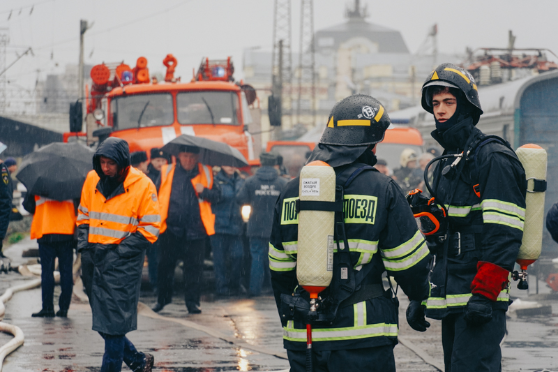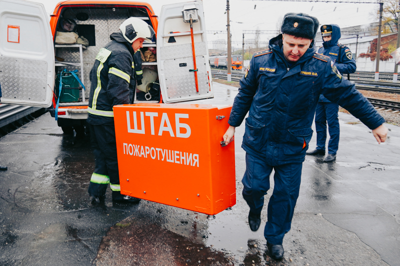 По легенде, внутри одного из вагонов с пассажирами загорелась обшивка. Первым на место происшествия пребывает пожарный поезд РЖД с цистернами воды. Один отряд МЧС принялся за эвакуацию людей, другой – развертывание пожарных гидрантов, а затем и тушение огня. В пожарно-тактических учениях также были задействованы оперативные службы вокзала, перед ними стояла задача – отключить контактную сеть.