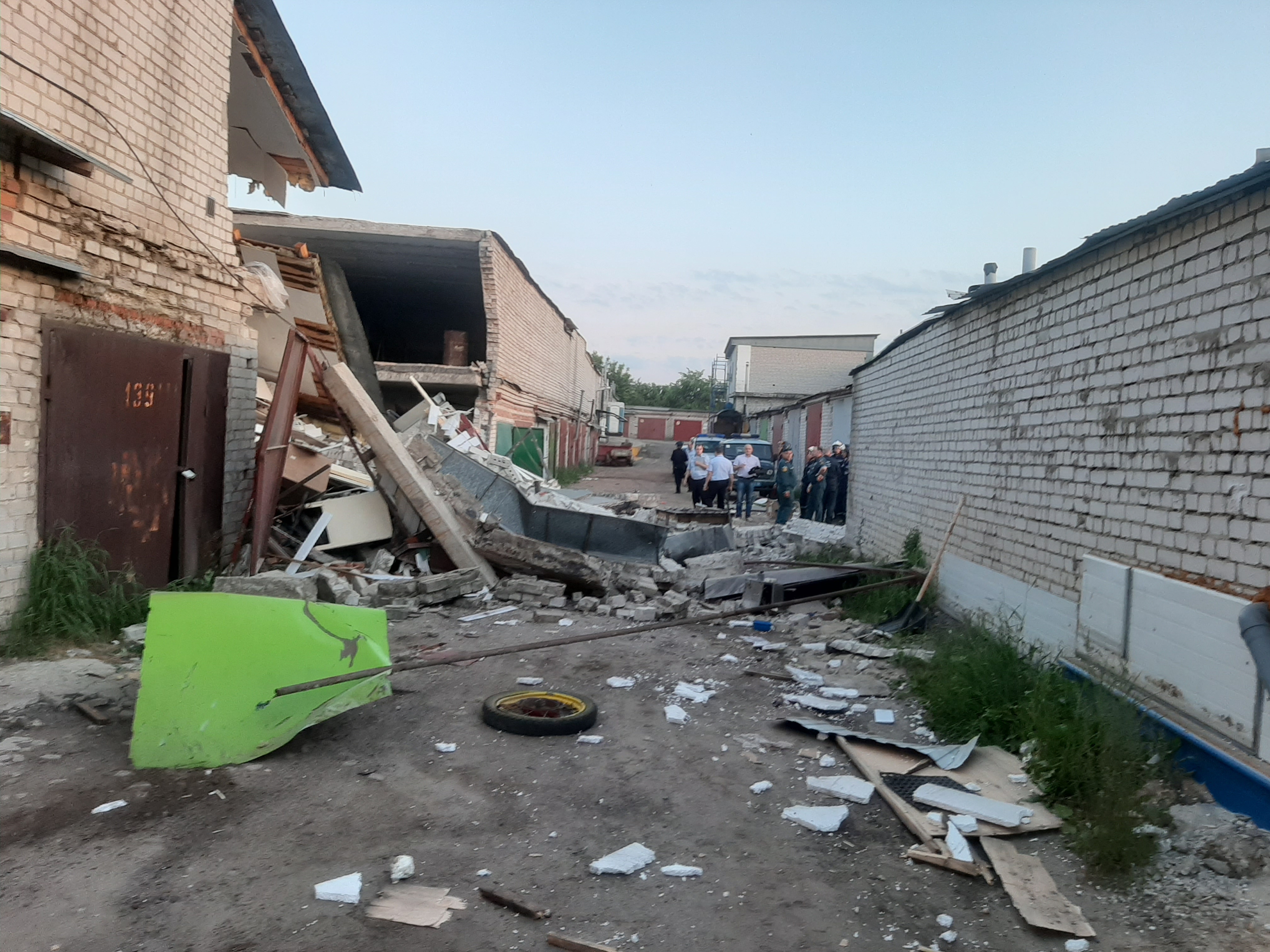 Когда на место прибыли первые подразделения спасателей, они установили, что в двухуровневом кирпичном здании гаражей, скорее всего, «произошел хлопок газового баллона», а вот горения (пожара) не было. В результате обрушились конструкции семи гаражей на площади 200 кв. м.