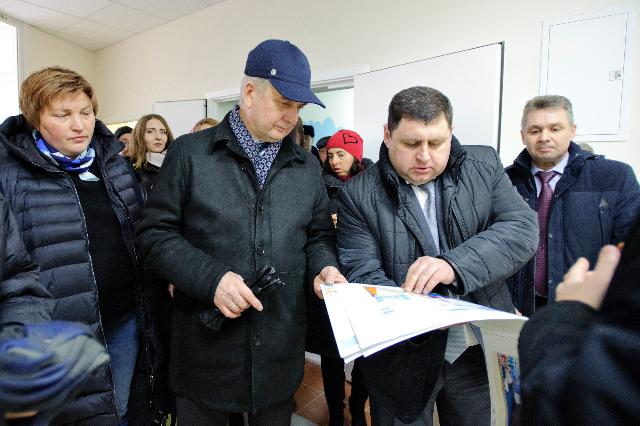 Александр Гусев с удовлетворением осмотрел обновившееся здание школы и пообещал подарок от правительства области.