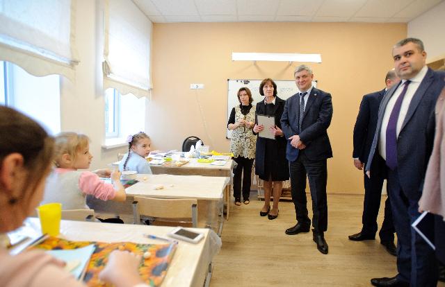 В селе Пески Александр Гусев осмотрел здание нового детского сада на 220 мест. Его строительство началось в сентябре 2016 года и подходит к концу – готовность объекта 80%. Сегодня завершаются отделочные работы, начался монтаж технологического оборудования для пищеблока и поставка мебели. Глава области осмотрел внутренние помещения и игровые площадки на улице. По заверению строителей, 1 июня детский сад уже примет малышей. Его открытие полностью решит проблему с дефицитом мест в дошкольных учреждениях Песковского сельского поселения.
