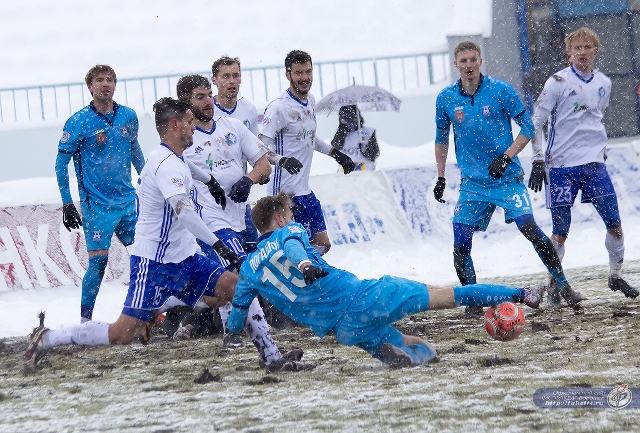 Конечно же, на заснеженном, «тяжелом» газоне созидать соперникам было крайне сложно. И каждая ошибка здесь вполне могла стать роковой. Первыми серьезную оплошность допустили калининградцы. На 13-й минуте Шахов, прерывая пас из глубины поля, поскользнулся и позволил Игорю Лебеденко выскочить один на один с Евгением Помазаном. Однако первый удар капитана «Факела» пришелся во вратаря соперников, второй – и вовсе получился неточным. Совсем скоро воронежцы организовали неплохую атаку правым флангом, которая завершилась выстрелом Дмитрия Рекиша в дальний нижний угол – и тут не сплоховал голкипер гостей.