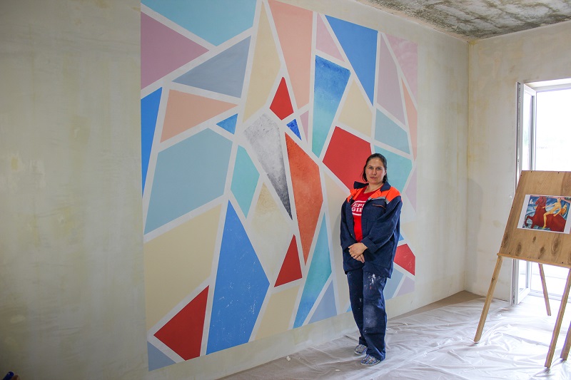 «Было сложно, – делится впечатлениями маляр из ДСК Евгения Ильцова, также вошедшая в число лауреатов, – это больше конкурс для художников, чем для маляров, ведь такие задания в повседневной работе мы не выполняем. Даже краску нам привозят уже колерованную. И хоть условием задания было создать свою композицию, а не повторять образец, но никто не проявил фантазию, все повторили. Только я выполнила свою, индивидуальную композицию. Сделала графический рисунок. Комиссия это оценила.