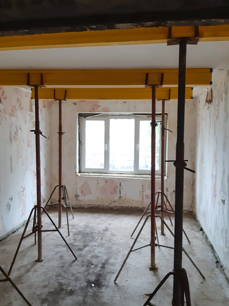 Подрядная организация приступила к работам после того, как были решены все жилищные вопросы людей. Сегодня уже закончена подготовка к бетонированию фундаментной плиты для усиления каркаса дома. Сейчас идёт монтаж конструкции внутри строения, благодаря которой рабочие смогут укрепить конструктив и самого здания. Тогда можно будет безопасно демонтировать вертикальную стену, пострадавшую при взрыве. Следующий этап – сбор металлоконструкции, которая основательно будет «защемлять» строение, защищая его от угрозы разрушения. После этого начнутся работы по бетонированию плит и стен.