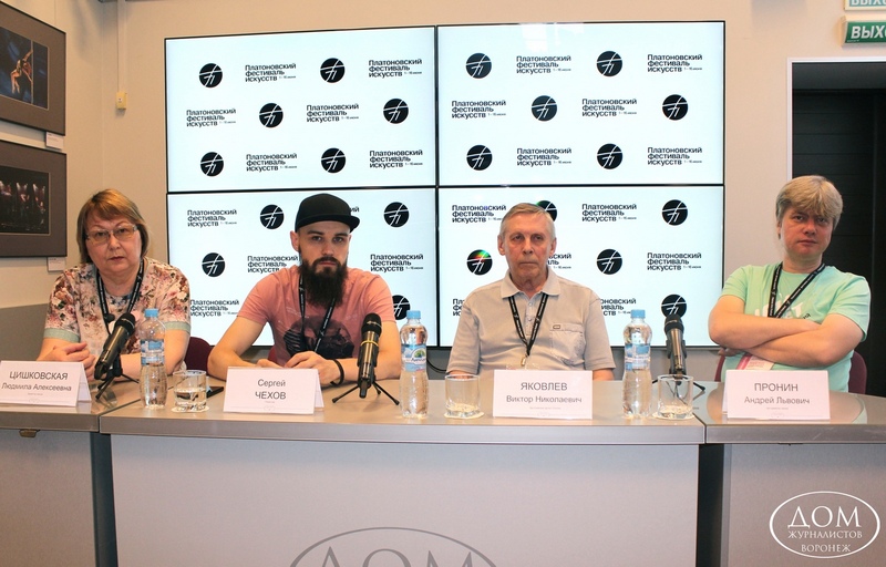 Актеры признаются, что сначала было тяжело воспринимать экспериментальное видение классики, но затем положились на режиссера и влюбились в эту работу. Сергей Чехов вместе с историком театра Андреем Прониным, директором Псковского театра Людмилой Цишковской и исполнителем главной роли в спектакле Виктором Яковлевым провели пресс-конференцию. Команда рассказала о репетициях, отношении к Платонову и об актуальном искусстве.