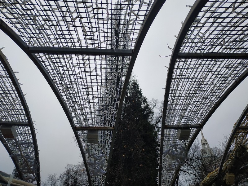 Как и прежде, на помосте будут установлены два десятка неоновых дуг белого и синего цвета 8 метров в высоту и 6 метров в диаметре. Световой ансамбль имитирует струи воды и создает атмосферу зимних праздников. В конструкции предусмотрены надежные дифференцированные автоматические выключатели с защитой от ударов током. При механическом воздействии или повреждении электросети подача напряжения в систему мгновенно прекращается и световое оборудование отключается.