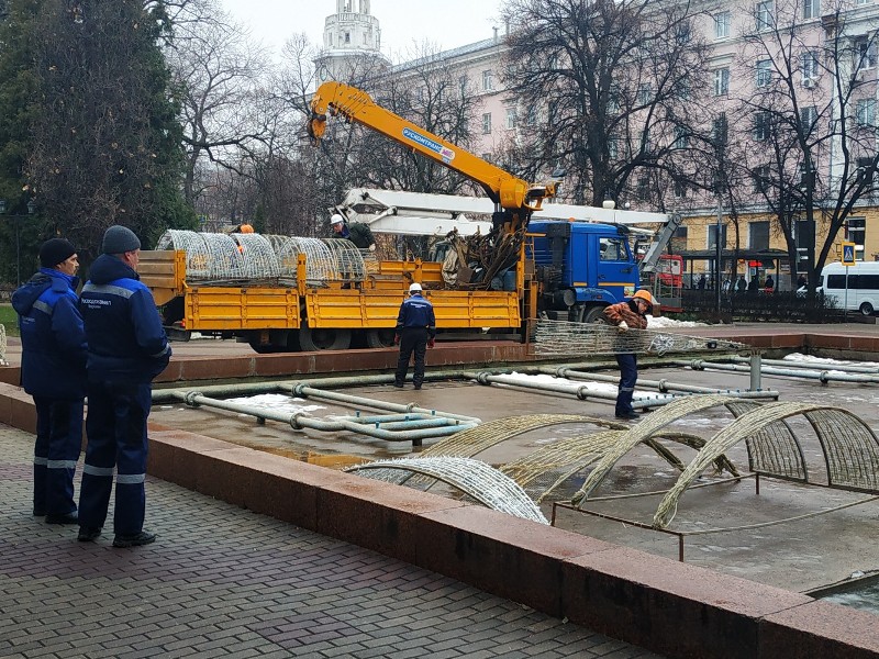«РВК-Воронеж» приступил к работам по монтажу светодиодного фонтана в Кольцовском сквере. Для установки конструкций используется спецтехника, в частности, манипулятор с выдвижной стрелой. Предварительно была проведена тщательная подготовка: специалисты предприятия проверили функциональность светового оборудования и изоляцию электропроводки. Уже сегодня вечером «фонтан» загорится, чтобы всю зиму в круглосуточном режиме радовать воронежцев и гостей города.