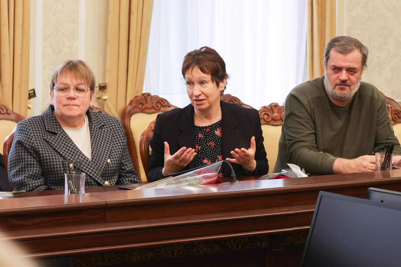 Денис рассказал собравшимся в мэрии о вопросах, с которыми чаще других обращаются в редакцию бойцы и волонтёрские организации, о самых ярких встречах и интервью. Отдельно поговорили о патриотическом воспитании и встречах с учащимися в школах.